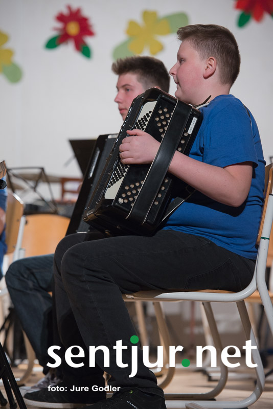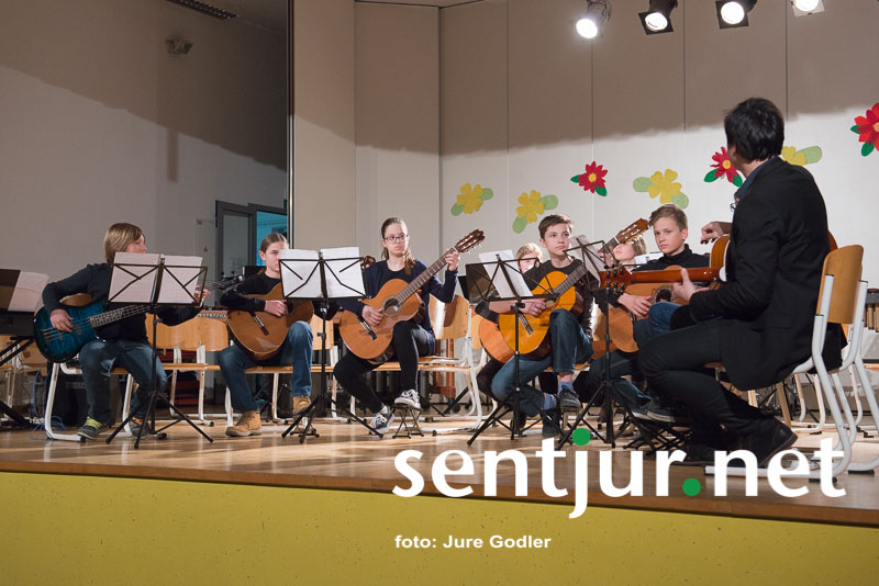 Blagovna, 22. 3. 2016 – Ponovno so učitelji in učenci Glasbene šole Šentjur pripravili tradicionalni pomladni koncert. Z njim so prebudili ljubezen do glasbe v marsikaterem obiskovalcu v telovadnici POŠ Blagovna, saj jim je šentjurski IKC za številne nastopajoče in obiskovalce precej pretesen. Tokrat pa organizatorji niso poskrbeli za “presenečenje”, s katerim so popestrili koncerte zadnjih nekaj let, kar pa ne pomeni, da je bil koncert zato kaj slabši. Nastopili so Kitarski orkester pod mentorstvom Uroša Eferla, Orkester harmonik Bojana Drakslerja ter odlična Godalna komorna skupina pod vodstvom Betke Rauter. Tudi tolkalci so prišli na svoj račun – zaigrali sta Orffova skupina Grom, pod mentorstvom Tine Pečar in Tolkalna skupina Splash pod vodstvom Eve Zavšek. Slednji so z majhno pomočjo pevca Matica Nareksa, kitarista Roka Lajlarja in bas kitarista Primoža Krnjaka zaigrali rokerski hit Gun’s N’ Roses, Swet child o’mine, in tako presegli tradicionalne okvirje tovrstnih koncertov. Po rock šoku za obiskovalce pa sta zaigrala še Orkester flavt Marte Kuzmanovski Koberski in Pihalni orkester Glasbene šole Šentjur pod vodstvom Boštjana Jagra. Ob sledenju višanja kvalitete tovrstnih koncertov so se nastopajočim skupinam pridružili še nekdanji učenci in učenke ter nekateri profesorji na šoli.