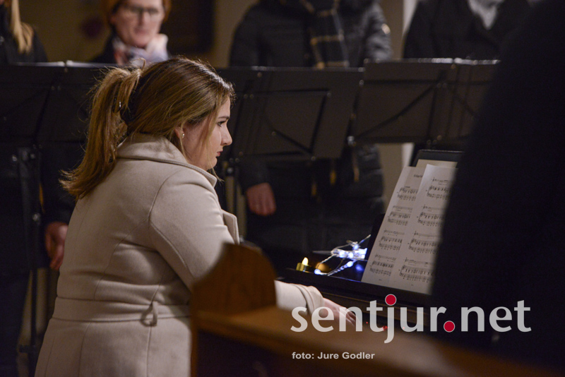Tovrstna tematika pesmi pa je Šentjurčanom še posebej znana, saj so jih prepevali pred 55 leti člani tukaj ustanovljenega New Swing Quarteta. Glasovirke je na klavirju spremljala Klara Mestek. (Jure Godler)