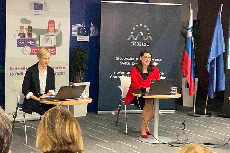 Ljubljana, 5. 10. 2021 – Na dan učiteljev je v Ljubljani, na Predstavništvu Evopske komisije v Sloveniji, na otvoritvenem dogodku »Uradna predstavitev orodja SELFIEforTEACHERS za samo-refleksijo«, Osnovna šola Hruševec Šentjur kot ena izmed prvih petih šol v Sloveniji na slovesni prireditvi prejela »priznanje digitalna šola«.