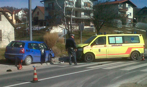 V prometni nesreči v Vrbnem pri Šentjurju sta se zaletela osebni avtomobil in reševalno vozilo. Pri zavijanju v levo se je voznik osebnega vozila hotel izogniti vozilu, ki je stalo pred njim, in pri tem trčil v reševalno vozilo. Ena oseba je bila z reševalnim vozilom prepeljana v celjsko bolnišnico.