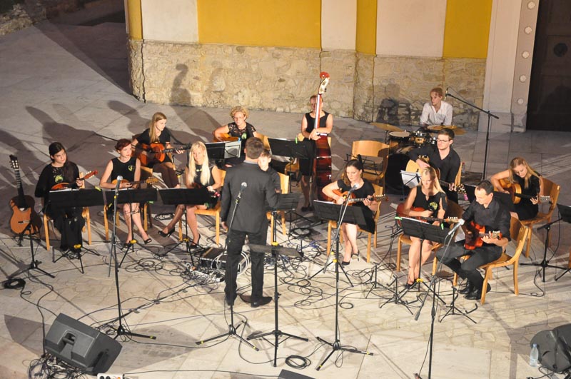 Petrovi tamburaši so tamburaški orkester. Igrati so začeli v Šempetru leta 2006, letos pa so obhajali tudi 10-letnico delovanja. Ime orkestra so si nadeli po svetniku Petru, po katerem je Šempeter tudi dobil ime. Zadnja leta pa orkester vodi dirigent Janez Krevel, študent kontrabasa, doma s Kalobja. Slednji je tudi vešče in simpatično povezoval prireditev in celo zapel s članico zasedbe Aniko Zupančič. Njihov repertoar obsega tako domače kot tuje skladbe, žanrsko pa pokrivajo skoraj celotno glasbeno zakladnico, od tamburaške in orkestralne klasike, do popevk, narodnozabavnih melodij in seveda dalmatinskih skladb. Petrovi tamburaši so navdušili zbrano občinstvo in poželi dolg aplavz. (Jure Godler, foto: Matej Verdinek)