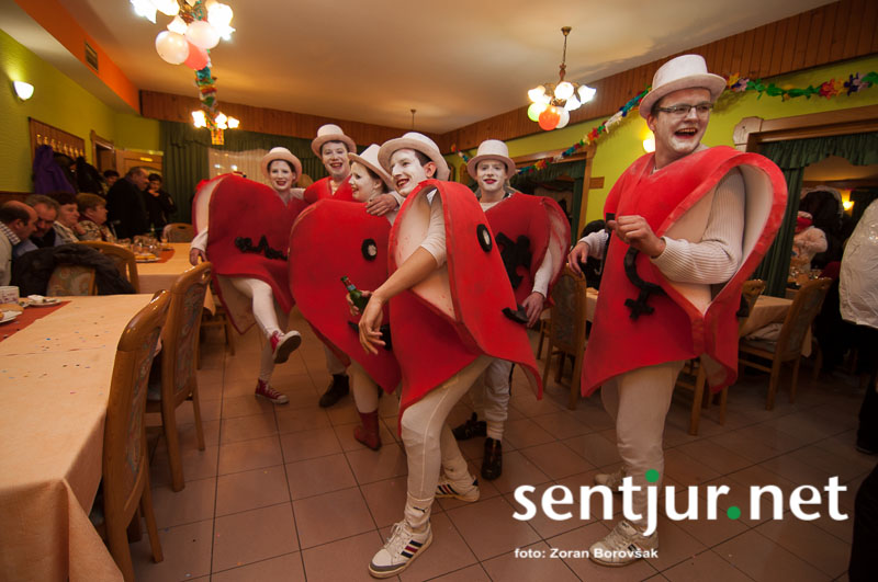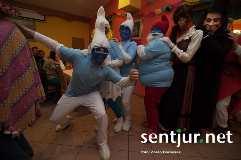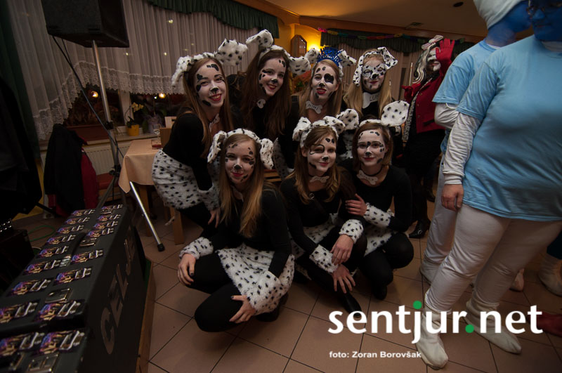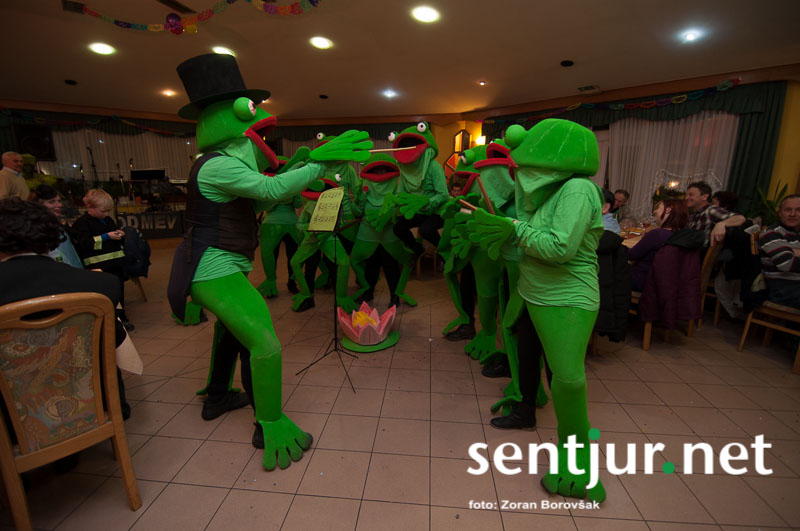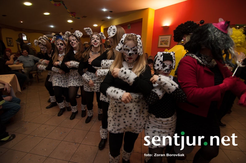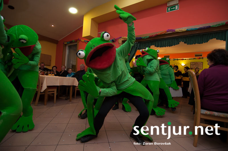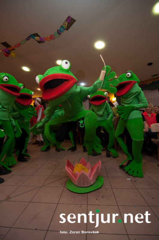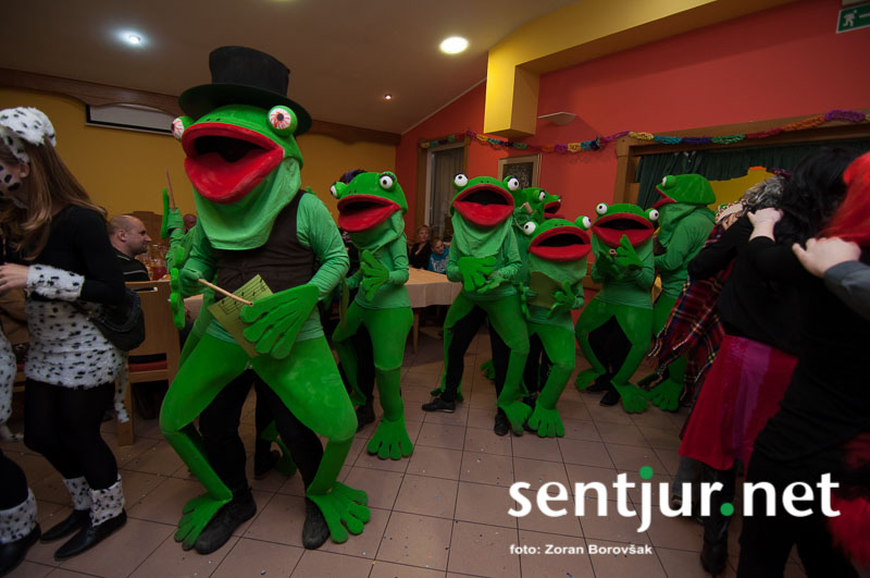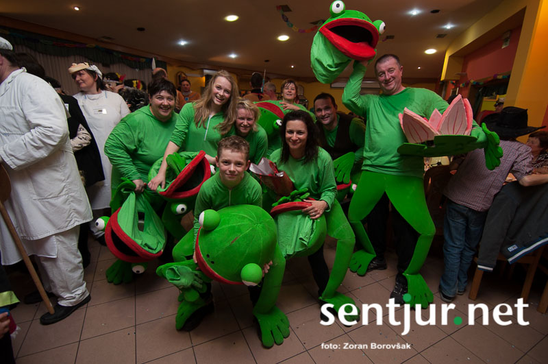 Dobje, 17. 2. 2014 – Večina pustnih rajanj za odrasle se je odvijala na pustno soboto. V znani dobjanski Gostilni pri Olgi pa to zabavo tradicionalno pripravijo prav na pustni torek. Tradicija namreč traja, že odkar gostišče obstaja. Kot vsako leto so tudi letos podelili nagrade za najboljše skupinske maske. Med obiskovalci smo poleg v naslovu naštetih opazili tudi dalmatinke, smrkce, čebele, črnke, prebivalce Kekčeve dežele in mnoge druge, ki niso bile nič manj izvirne od naštetih. S svojim obiskom pa sta zbrane počastila tudi France Prešeren in njegova Primicova Julija. Nekaj pred polnočjo so vse maske nestrpno čakale na razglasitev, katera od njih je bila letos najboljša. To titulo je komisija, katero so sestavljali znani občani, letos podelili Žabicam, ki so s svojim regljanjem in skakljanjem še dodatno popestrile večer. Seveda pa niso pozabili na podmladek, saj so nagrade podelili tudi najmlajšim maskam. Vsi obiskovalci so ob zvokih humorističnega ansambla Odmev iz Celja, v katerem igra tudi njihov rojak in občinski svetnik Peter Frece, rajali še dolgo v noč. (Zoran Borovšak)
