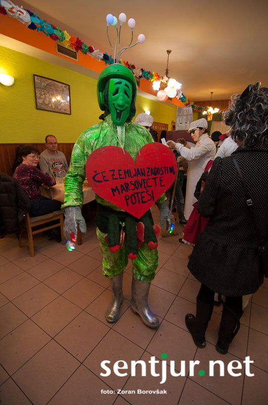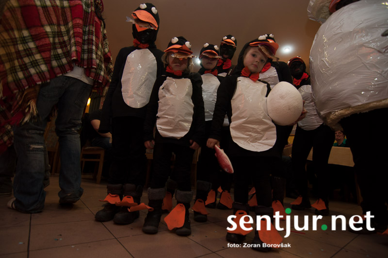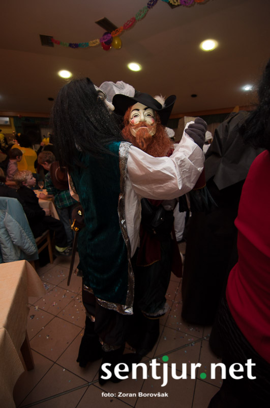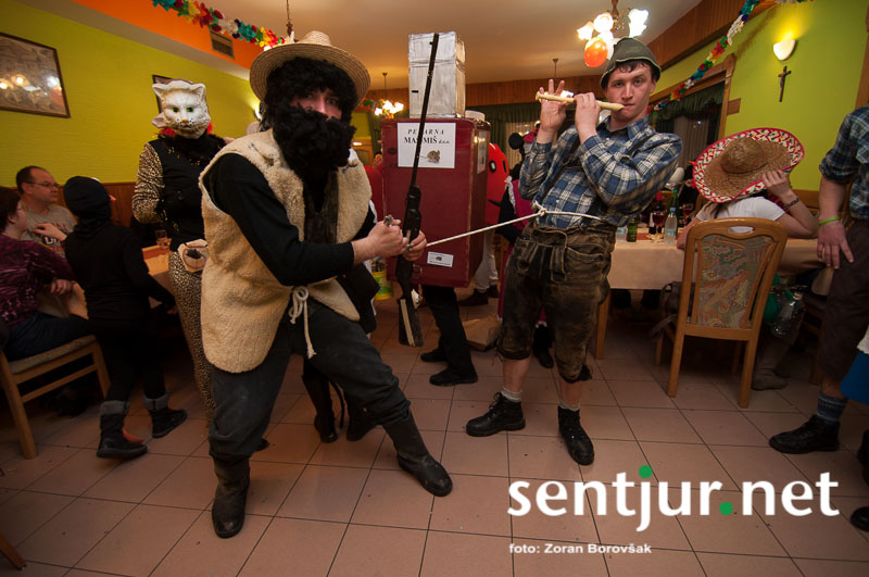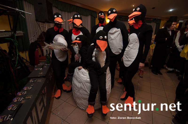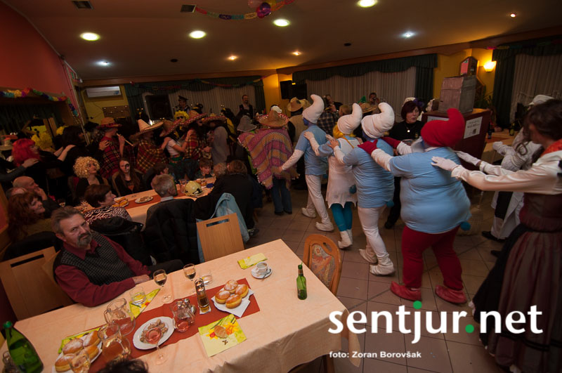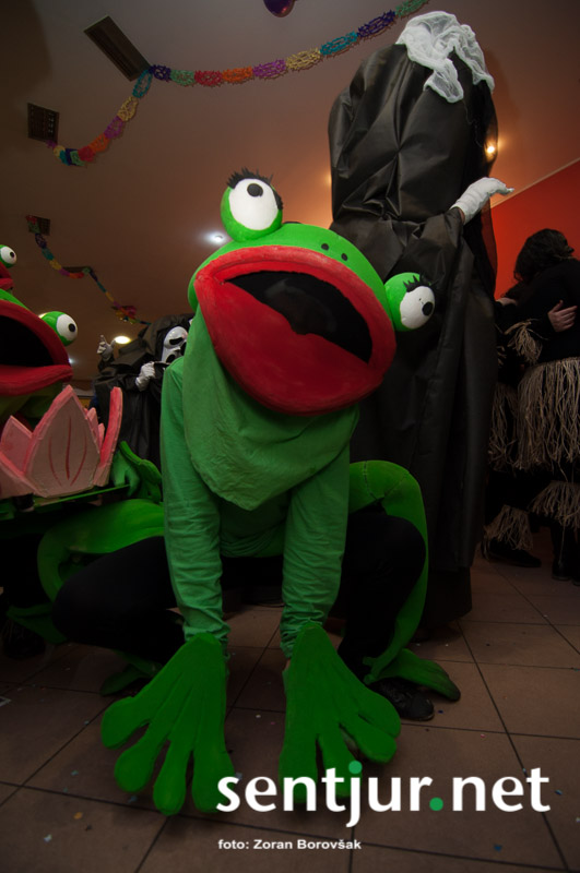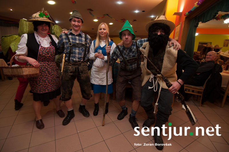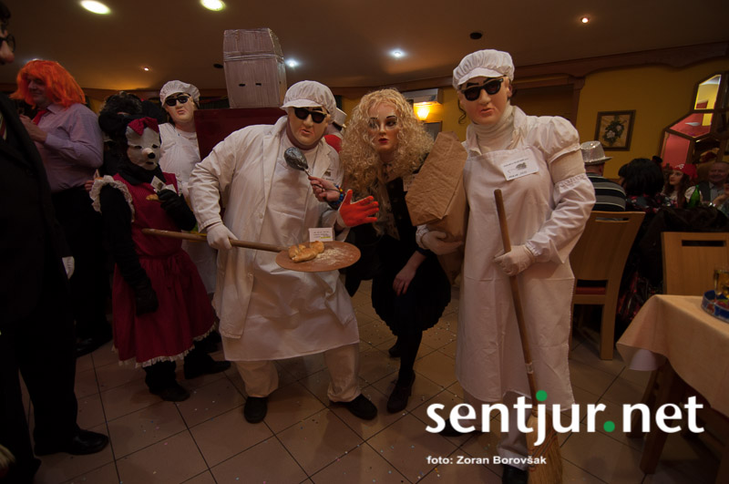 Dobje, 17. 2. 2014 – Večina pustnih rajanj za odrasle se je odvijala na pustno soboto. V znani dobjanski Gostilni pri Olgi pa to zabavo tradicionalno pripravijo prav na pustni torek. Tradicija namreč traja, že odkar gostišče obstaja. Kot vsako leto so tudi letos podelili nagrade za najboljše skupinske maske. Med obiskovalci smo poleg v naslovu naštetih opazili tudi dalmatinke, smrkce, čebele, črnke, prebivalce Kekčeve dežele in mnoge druge, ki niso bile nič manj izvirne od naštetih. S svojim obiskom pa sta zbrane počastila tudi France Prešeren in njegova Primicova Julija. Nekaj pred polnočjo so vse maske nestrpno čakale na razglasitev, katera od njih je bila letos najboljša. To titulo je komisija, katero so sestavljali znani občani, letos podelili Žabicam, ki so s svojim regljanjem in skakljanjem še dodatno popestrile večer. Seveda pa niso pozabili na podmladek, saj so nagrade podelili tudi najmlajšim maskam. Vsi obiskovalci so ob zvokih humorističnega ansambla Odmev iz Celja, v katerem igra tudi njihov rojak in občinski svetnik Peter Frece, rajali še dolgo v noč. (Zoran Borovšak)