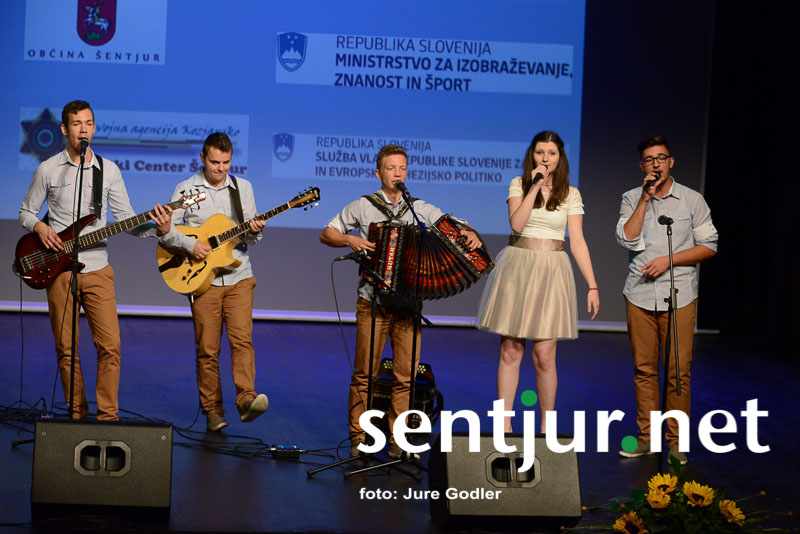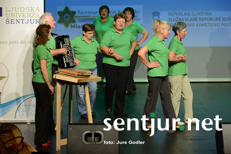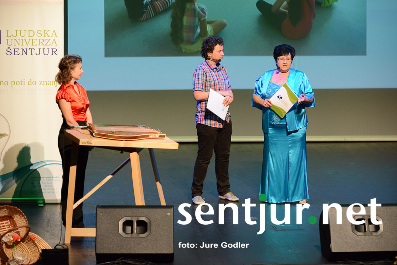 Šentjur, 16. 6. 2015 – Napoved slabšega vremena je pregnala v varno zavetje Ipavčevega kulturnega centra Šentjur tudi “učence in učitelje” ter ostale obiskovalce zaključne prireditve Ljudske univerze Šentjur. Spričevala je tistim, ki jih še niso prijeli, vodstvo LUŠ podelilo že kakšno urico pred prireditvijo. Prireditev sta povezovala nevsakdanji voditeljski par – učenec OŠ Slivnica pri Celju Vid Palčnik in Marijana Novak, urednica lokalnega časopisa Šentjurčan. Uvodoma so nastopili pevec in pevke LUŠtnega orkestra, ki jih na citrah spremlja njihova mentorica Jasmina Levičar. “V življenju je potrebno vedno napredovati in nikoli ne obstati na istem mestu, zato se je potrebno izobraževati,” je Novakova odgovorila na vprašanje mladega sovoditelja, zakaj se je potrebno izobraževati.