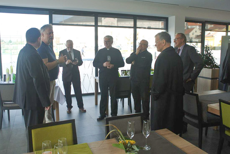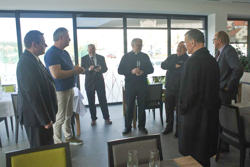 Poudaril je, da imajo župnije in cerkve tako v mestu kot na našem podeželju veliko povezovalno vlogo. Tako se župan z župniki pogosto sreča tudi ob kakšni otvoritvi in hkratnem blagoslovu. Tudi tokrat se je na povabilo odzval upokojeni celjski škof msgr. dr. Stanislav Lipovšek, ki rad ostaja povezan s tukajšnjimi kraji. Skupnega obeda se je udeležil direktor občinske uprave Jože Palčnik, sogovorniki pa so bili g. Vinko Čonč iz šentjurske župnije, mag. Alojz Kačičnik s Ponikve, g. Niko Krajnc iz Dramelj ter Marko Šraml iz slivniške in prevorske župnije. (vir: Občina Šentjur)