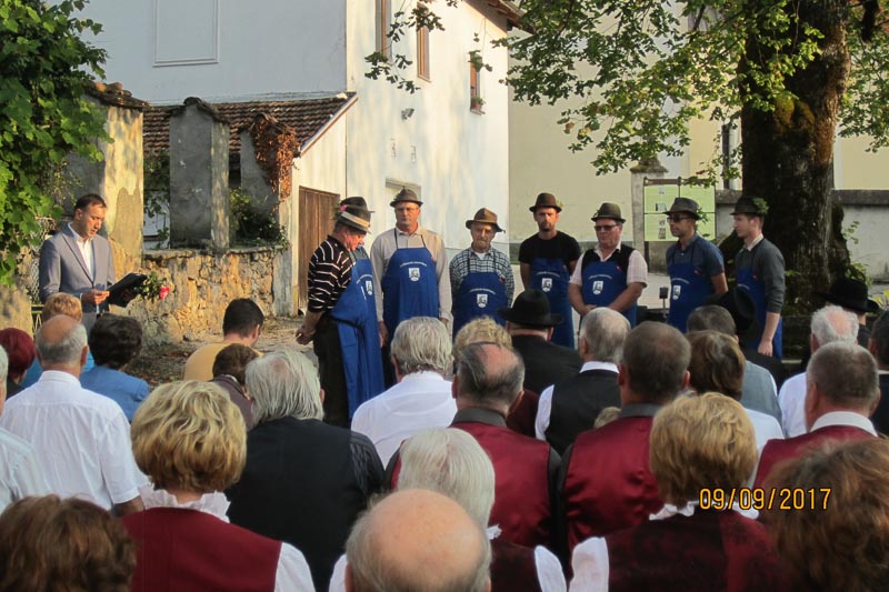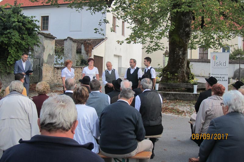 Pilštanj, 9. 9. 2017 – JSKD OI Šmarje pri Jelšah je letos že tretjič organiziral območno srečanje pevcev ljudskih pesmi in godcev ljudskih viž pod lipo na trgu Pilštanj. Udeležilo se ga je devet skupin in posameznikov iz različnih okoliških občin, med katerimi je bila s tremi skupinami zastopana tudi Občina Šentjur. Njihove nastope je spremljal strokovni spremljevalec Miha Zupanc, ki je v neuradnem delu skupinam podal svoje strokovno mnenje o izvedbah.