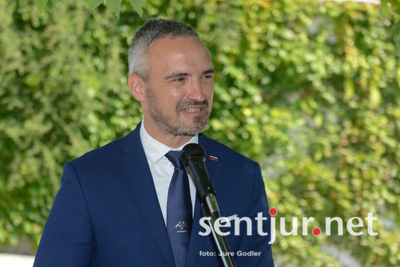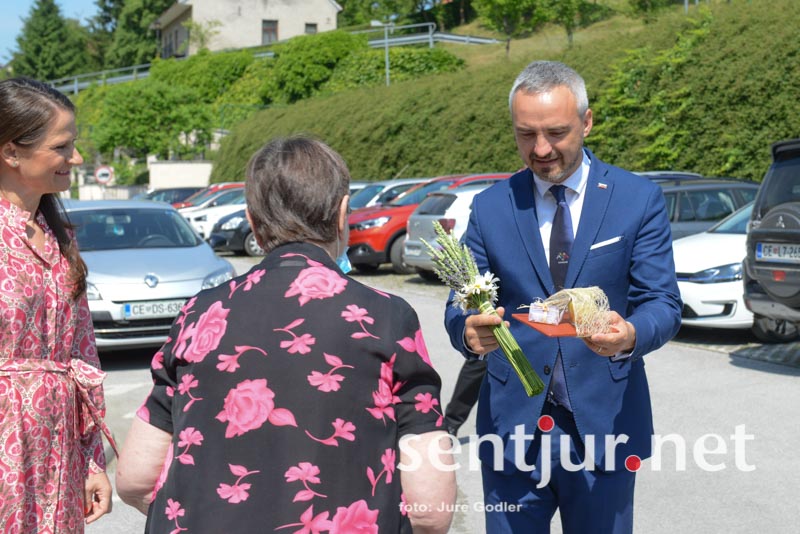 Na prvo dejanje začetka gradnje – otvoritvi temeljnega kamna, pa se je v Šentjur oglasil tudi minister za delo, družino, socialne zadeve in enake možnosti Janez Cigler Kralj. Izpostavil je, da je prizidek k domu, s to vsebino, nova smernica v svetu. Na ministrstvu se zavedajo, da dolgotrajno stanje v sistemski oskrbi ni dobro, zato so pristopili tudi s prioritetnim cepljenjem stanovalcev proti koronavirusu. Pohvalil je idejo o začasnem bivanju starejših, ki bodo tukaj lahko počakali družino, ki skrbi za njih in so za krajši čas odšli z doma (letni dopust ipd …). “Ta investicija je velika pridobitev in se veselim z vami,” je zaključil minister. V Šentjur je pripotoval s sekretarko v kabintu vlade Jelko Godec.