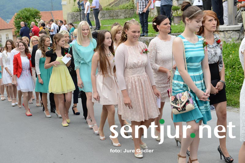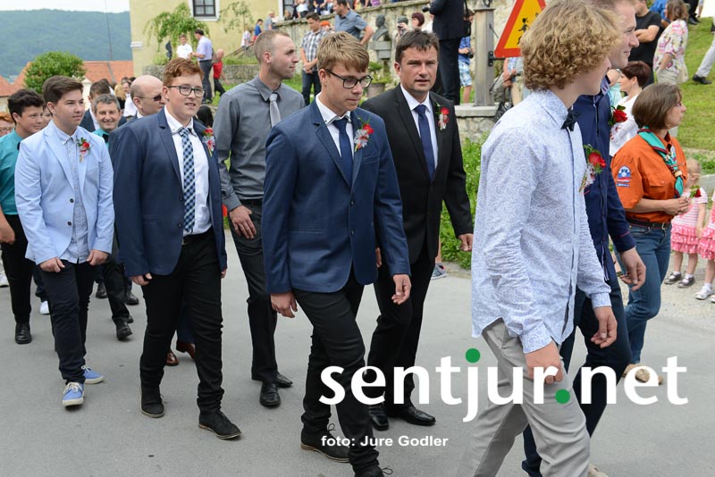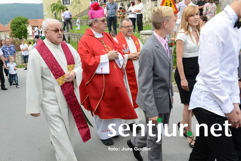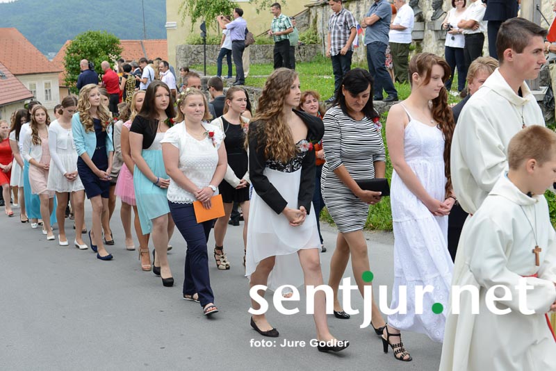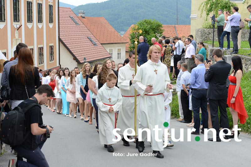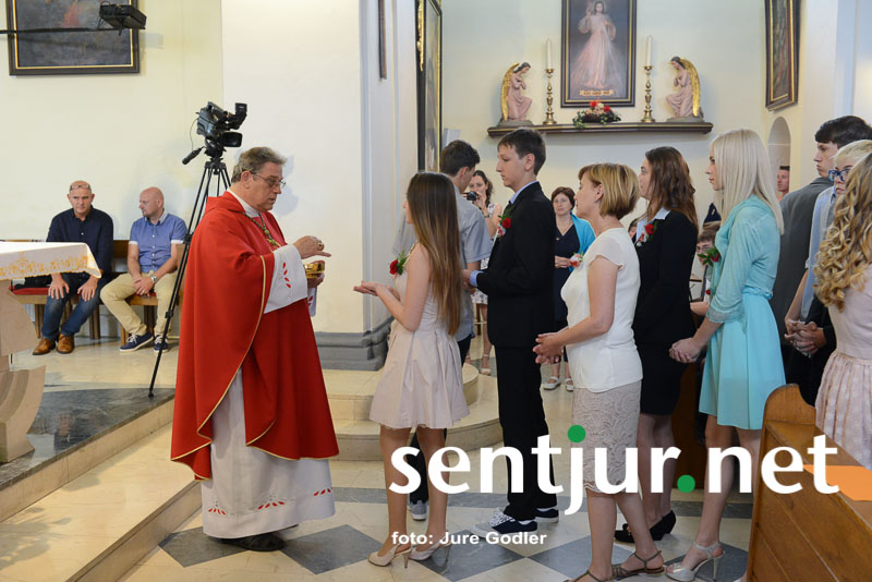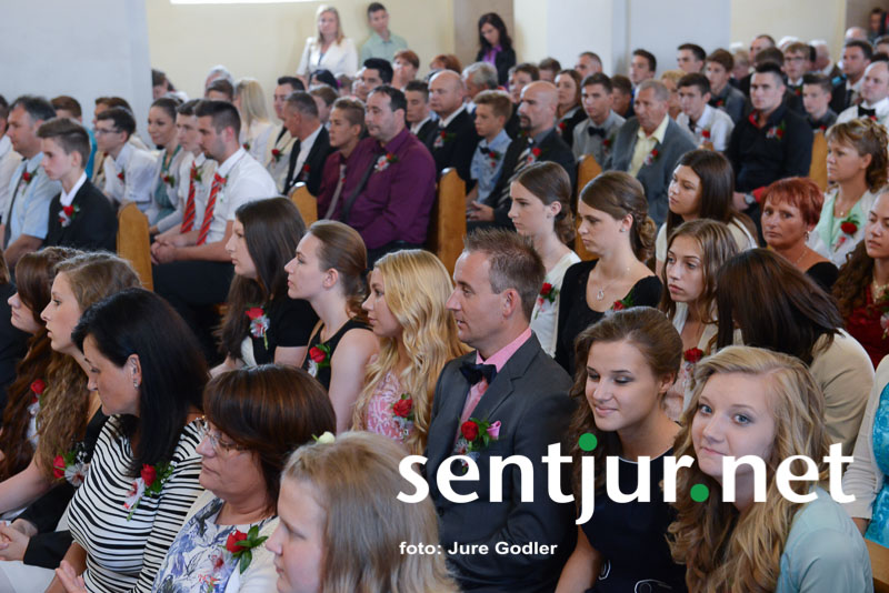 Šentjur, 27. 6. 2015 – V rimskokatoliški cekrvi je birma zakrament potrditve v veri, ki prejemniku še dopolni in utrdi milost, ki jo je prejel pri krstu. Birmo velikokrat opredeljujejo kot most med otroštvom in odraslostjo. V soboto je krščanski zakrament v cerkvi Sv. Jurija v Šentjurju prejelo 74 birmancev. Mašo sta darovala domači župnik Vinko Čonč in celjski opat Marjan Jezernik. Birmanci so prejeli Božjo milost in darove Svetega Duha: dar modrosti, dar umnosti, dar svéta, dar moči, dar vednosti, dar pobožnosti in dar strahu Božjega. Ti darovi bolje usposobijo prejemnika za življenje po Jezusovem nauku in s tem za krščansko pričevanje. Opat Jezernik je na srce položil birmancem, da naj uporabljajo darove, ko bodo zakorakali v svet, botrom pa, da naj bodo svetal zgled svojim birmancem. Dodamo naj še novico, da je bil nad fotografi, balonarji in ostalimi, ki pred cerkvijo prodajajo svoje storitve ali izdelke, izvršen tudi inšpekcijski nadzor. (Jure Godler)