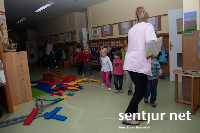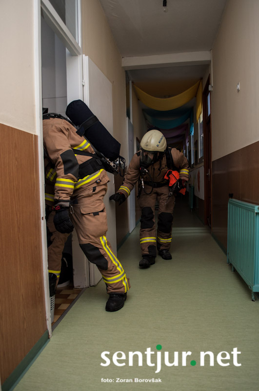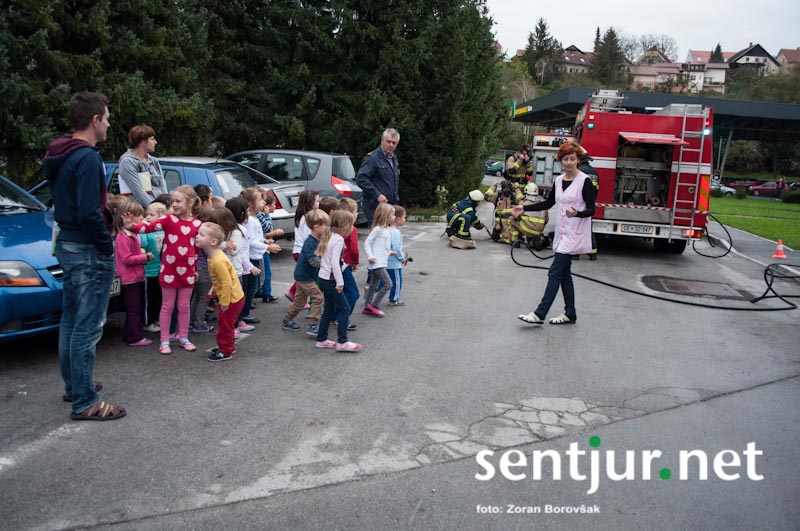 V obeh vrtcih so se takoj po alarmu za požar otroci v igralnicah formirali v skupine in pod vodstvom vzgojiteljic v gosjem redu hitro odšli na zbirno mesto v zunanjosti. Kmalu so z lučmi in s sirenami pridrveli gasilci, ki so izvedli vstop v objekt, “pogasili” požar in preverili, če je v vrtcu še kdo. Po ugotovitvi, da je požar pogašen, so se otroci in vzgojitelji lahko vrnili na svoja delovna mesta in tam polni vtisov počakali svoje starše. Pred tem so opravili še gasilsko fotografiranje z gasilci. (Zoran Borovšak)