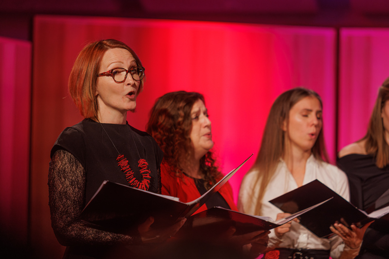 “November morda ni najbolj znan kot mesec ljubezni, ampak – zakaj bi jo omejevali na letne čase? Ljubezen se skriva vsepovsod in vedno- v drobnih trenutkih: v nasmehu, ki nas preseneti, v roki, ki nas ujame, ko se spotaknemo, in v pesmi, ki nas spomni, da nikoli nismo sami,” je uvodoma povedala Sara Godler, ki je koncert simpatično povezovala. Pevci obeh vokalnih skupin so pripravili smiselno izbran nabor pesmi, ki so občinstvo nežno popeljale skozi različne odtenke ljubezni. Obiskovalci, ki so napolnili dvorano do zadnjega kotička, so prejeli posebno darilo, tisto, ki ga v hitrem tempu vsakdana pogosto spregledamo. Čas, toplino in pesem, ki je prihajala iz srca. Pevci so svojo energijo in predanost predali občinstvu z iskrenostjo, ki je napolnila prostor in pričarala resnično praznično vzdušje.