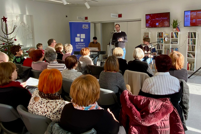 Šentjur, 18. 12. 2024 – Zaključni dnevi iztekajočega koledarskega leta so bili na univerzi izjemno pestri in polni različnih dogodkov, ki so združili ljudi vseh generacij. Od likovne razstave in glasbenega nastopa do delavnic o zdravju in dobrem počutju – vsak je lahko našel nekaj zase. Skupaj smo ustvarjali, se učili in seveda tudi veliko zabavali.