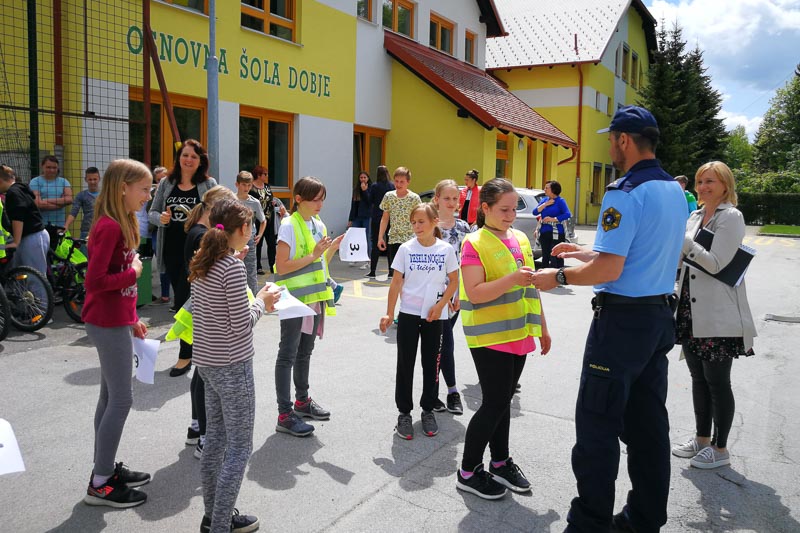 Prav tako je na OŠ Dobje opravilo kolesarski izpit trinajst učencev. Na šoli imajo od lanskega leta tudi novo pridobitev kolesarski poligon, ki ga je SPV pridobil na izboru lokalnih skupnosti v okviru Javnega poziva za sodelovanje pri razvijanju in pospeševanju preventivnih programov ter izvajanju nacionalnih akcij na lokalni ravni v letu 2018. Tudi udeležencem na kolesu so predstavniki Policije ter SPV zaželeli srečno vožnjo. Naj izpostavimo še petošolce OŠ Dobje, ki so tudi to šolsko leto sodelovali na razpisu družbe Butan plin »Varno na kolesu« ter na regijski ravni osvojili 1. mesto, na državni ravno pa 3. mesto.
