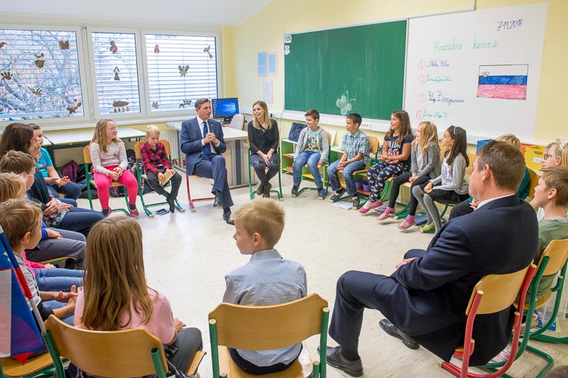 Dramlje, 8. 11. 2018 – V 4. b so skupaj z učiteljico Evo Jazbec Leber v znak spoštovanja in radovednosti predsedniku države poslali nekaj različnih besedil. Ideja o povabilu predsednika na Osnovno šolo Dramlje je nastala v okviru učnega procesa. Šola se lahko pohvali z izvajanjem različnih mednarodnih projektov, kot so Erasmus+ KA2 CELL in Erasmus+ KA1 IRSKA. Učenci so pri pouku spoznavali angleško govoreče države, nato pa našo domovino Republiko Slovenijo. Vsaka država ima svojega predsednika in prav je, da ga vsi osnovnošolci poznajo. Tako so se v 4. b odločili, da bodo pisali predsedniku. S poslanimi besedili so želeli pokazati, da predsednika spremljajo in podpirajo.