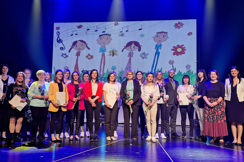 Ob koncu prireditve je nekaj besed spregovorila tudi Leonida Došler, vodja JSKD izpostave Šmarje pri Jelšah, ki se je iskreno zahvalila vsem sodelujočim. S podžupanom, gospodom Urošem Operčkalom in ravnateljico vrtca Šmarje pri Jelšah, gospo Jelko Kitak je slavnostno podelila priznanja mentoricam nastopajočih skupin. Veselilo nas je, da smo se ponovno zbrali v tako velikem številu in širšemu okolju pokazali kaj zmoremo s skupnimi močmi. Naj živi in naj se vrti Veseli vrtiljak! (Tanja Zagorščak, Vrtec Šmarje pri Jelšah)