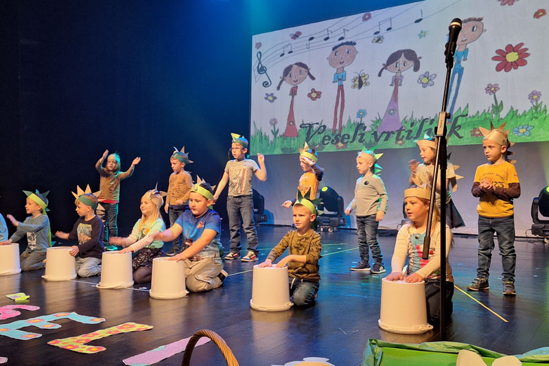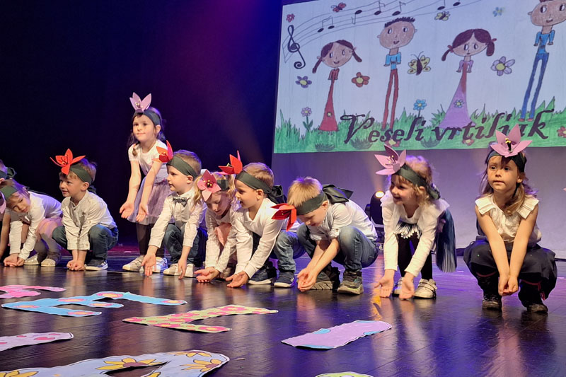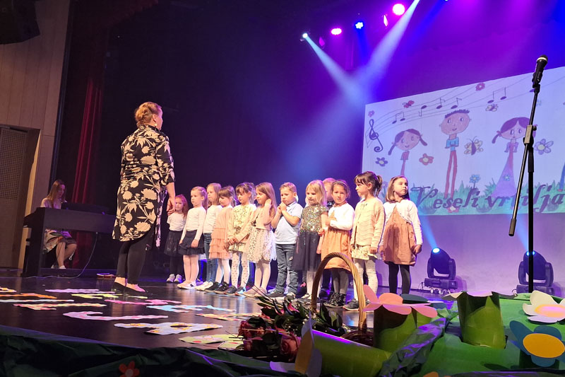 Šmarje pri Jelšah, 19. 5. 2023 – V petek, smo si v polni dvorani Kulturnega doma Šmarje pri Jelšah imeli čast ogledati medobčinsko revijo petja in plesa – našega tradicionalnega Veselega vrtiljaka. Otroci so na svoje glasbene, pevske in plesne točke zelo ponosni zato so jih z veseljem ponesli med nas, ter nam pripravili pester in živahen kulturni program. Najprej smo prisluhnili govoru ravnateljice otroškega vrtca Šmarje pri Jelšah, Jelki Kitak, nekaj besed pa je med nas podelil tudi podžupan občine Šmarje pri Jelšah Uroš Operčkal.