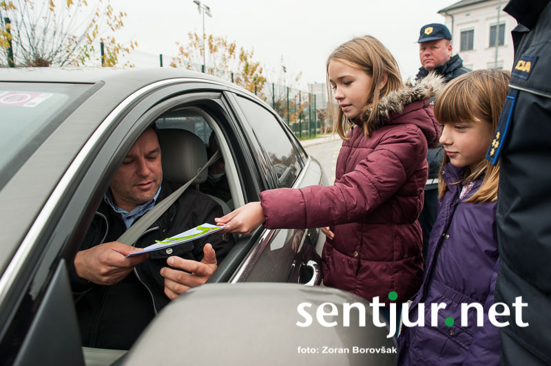 Šentjur, 11. 11. 2019 – V ponedeljek so učenci OŠ Franja Malgaja sodelovali v preventivni ulični akciji »Otroci za varnost v prometu«. Akcijo organizira Nacionalni inštitut za javno zdravje. Poteka vsako leto v novembru – mesecu preprečevanja odvisnosti. Na naši šoli se je akcije udeležilo 79 učencev iz 4. a, 4. b in 2. b razreda. Učenci so napisali in narisali sporočila odraslim na temo alkohola in prometa. Skupaj s policistoma Urošem Malgajem in Miranom Fuchsom so pristopili k vozilu, vozniku predali zgibanko in mu zaželeli »Varno vožnjo brez alkohola«. Odziv voznikov je bil zelo pozitiven. Mi smo pa smo mnenja, da otroška beseda in slika sega v srca voznikov in odraslih ter trka na njihovo vest, da res ne bo alkohola v prometu. (Marija Pezdevšek)