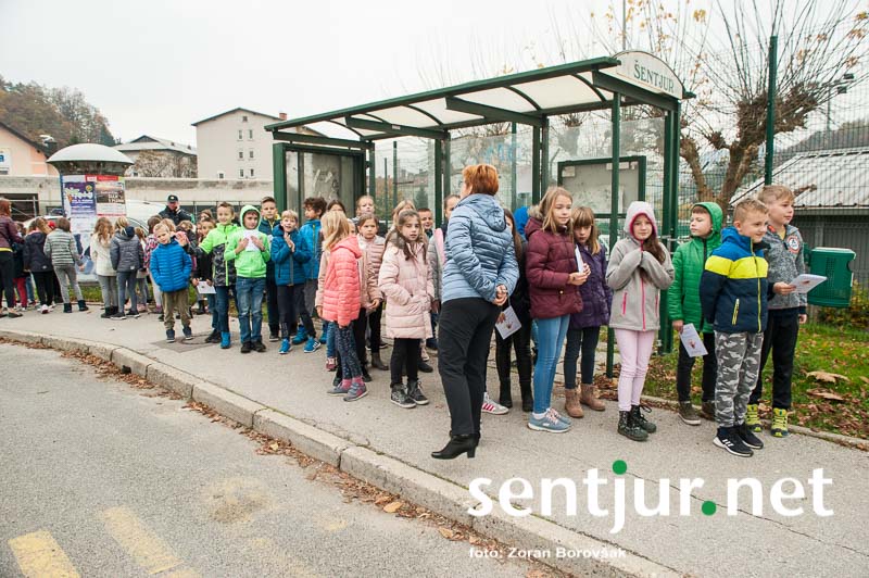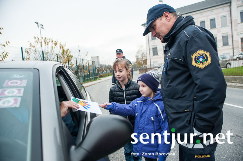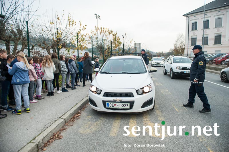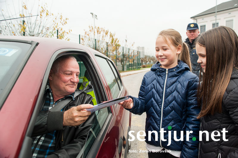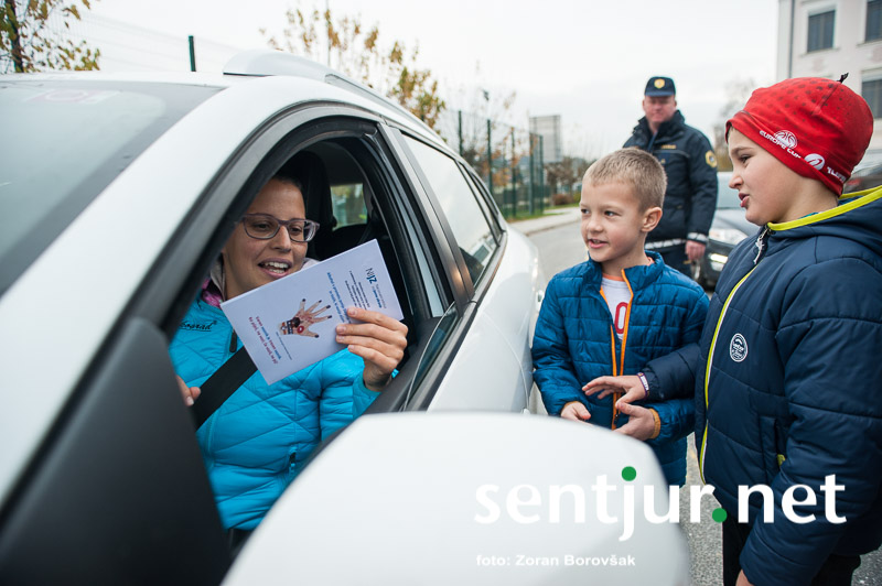 Šentjur, 11. 11. 2019 – V ponedeljek so učenci OŠ Franja Malgaja sodelovali v preventivni ulični akciji »Otroci za varnost v prometu«. Akcijo organizira Nacionalni inštitut za javno zdravje. Poteka vsako leto v novembru – mesecu preprečevanja odvisnosti. Na naši šoli se je akcije udeležilo 79 učencev iz 4. a, 4. b in 2. b razreda. Učenci so napisali in narisali sporočila odraslim na temo alkohola in prometa. Skupaj s policistoma Urošem Malgajem in Miranom Fuchsom so pristopili k vozilu, vozniku predali zgibanko in mu zaželeli »Varno vožnjo brez alkohola«. Odziv voznikov je bil zelo pozitiven. Mi smo pa smo mnenja, da otroška beseda in slika sega v srca voznikov in odraslih ter trka na njihovo vest, da res ne bo alkohola v prometu. (Marija Pezdevšek)