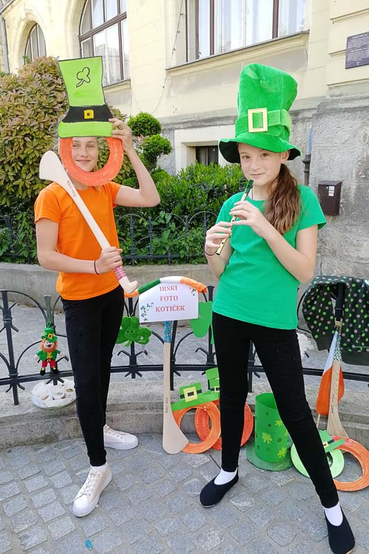 Pri predstavitvi zelene države nam je pomagal tudi naš dragi irski prijatelj Dave Ryan, ki je s svojo irsko prijaznostjo pritegnil marsikaterega obiskovalca k stojnici. Glavna točka pri predstavitvi Irske pa je zagotovo bil tradicionalni irski ples, ki so ga zaplesale naše učenke, ki plešejo pod mentorstvom učiteljice Ane Štor, ki je tudi koordinatorica Erasmus+ projekta KA1 na Osnovni šoli Dramlje. Vsi navzoči so bili navdušeni nad irsko glasbo in plesom naših plesalk. Za nami je bil uspešen dan.