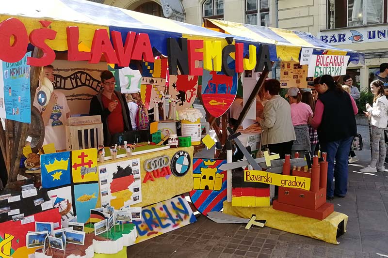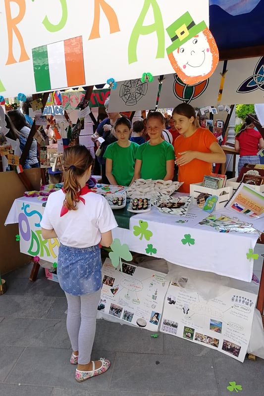 Celje, 8. 5. 2018 – Vsako leto 9. maja praznujemo Dan Evrope. To je dan, ko naša Evropa praznuje rojstni dan. V ta namen je bil letos, 8. maja v Celju organiziran vseslovenski tradicionalni projekt Evropska vas, kjer sodelujejo osnovne ter srednje šole iz Celja in okolice. Tudi naša osnovna šola se je letos pridružila projektu ter v sodelovanju z Gimanzijo Celje Center obiskovalcem predstavila “zeleno” Irsko.Cilj projekta je spodbuditi medkulturno razumevanje, solidarnost, spoznavanje drugih narodov in držav v Evropski uniji ter se hkrati zavedati svoje lastne slovenske kulture. Po slovenski himni, ki so jo zapeli vsi na trgu je navzoče mlade in vse obiskovalce Evropske vasi nagovorili tudi predsednik države Borut Pahor.