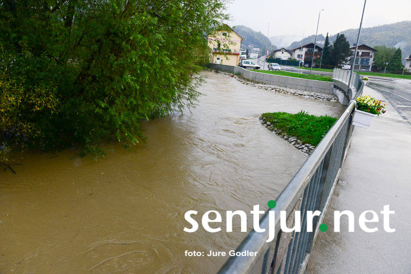 Na obhodu smo srečali tudi župana Občine Šentjur mag. Marka Diacija, ki je zaskrbljeno opazoval narasle vode. “Danes ob 15. uri sem naredil obhod in je bilo po vodotokih vse v mejah normale, ob 18. uri pa so brežine vodotokov že na preizkušnji,” nam je zaupal. Voda se je že razlila po suhih zadrževalnikih in poljih, ki so namenjeni za to. “V kolikor bo deževje pojenjalo, se nimamo česar bati glede poplav, so pa te enormne količine vode, ki pridrvijo v zelo kratkem času zelo nevarne,” še doda. Brez teh protipoplavnih ukrepov bi del Šentjurja in Hruševca ter Vrbnega že bil pod vodo.