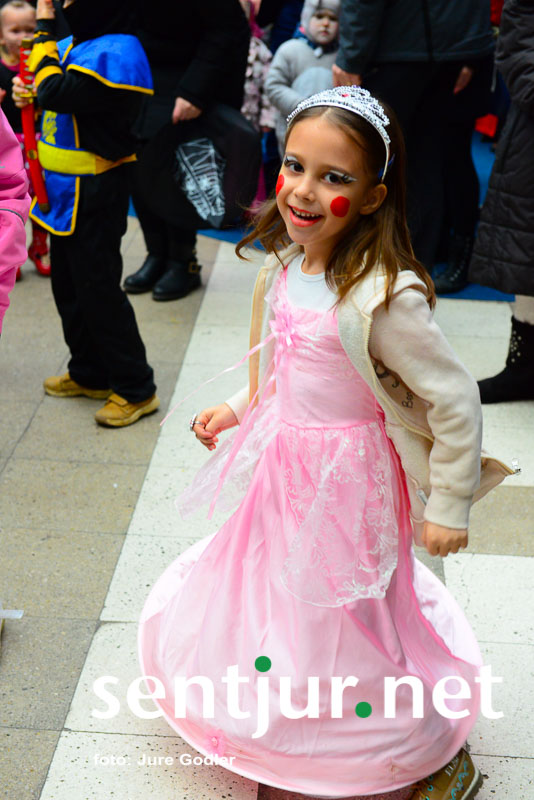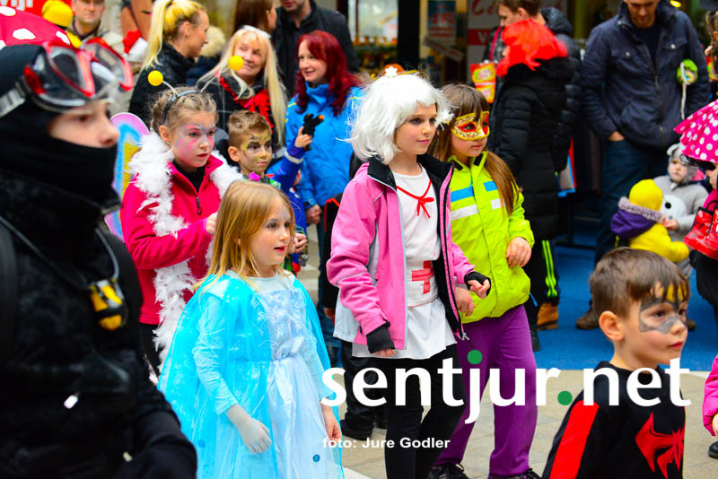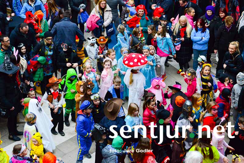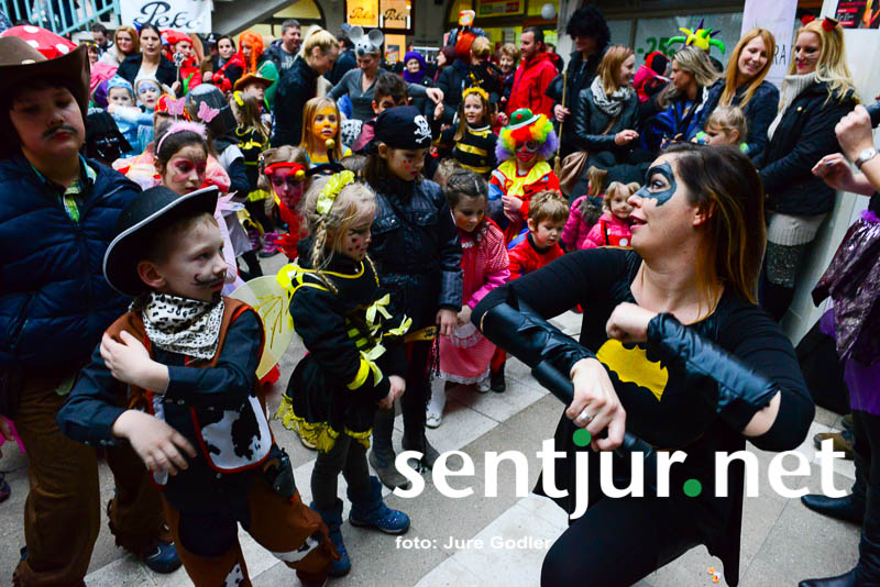 Šentjur, 9. 2. 2016 – Letošnja zima je bila komaj omembe vredna, vendar so jo številne maske uspešno preganjale. Pustni torek je že nekaj let oziroma desetletij namenjen šentjurskemu pustnemu rajanju. Tudi tokrat so ga organizirali člani Društva prijateljev mladine Šentjur, vendar sta jim načrte, da rajanje izvedejo na Mestnem trgu, kot ponavadi preprečila mrzel veter in rahel dež. Zato so dogodek prestavili v Tržnico Šentjur. Objekt je bil po zelo dolgem času ponovno poln. Maske so plesale ob ritmih zumbe, korake pa sta jim kazali Katja Gajšek in Nina Hriberšek. Organizatorji so tudi nagradili številne pustne maske, delili slastne krofe in pustnim šemam pripravili odlično uro in pol dolgo zabavo. Na pustovanje pa so pricingljali tudi kurenti od vsepovsod. Društvo prijateljev mladine Šentjur pa ima tudi novo predsednico. Nino Pišek je zamenjala Simona Brilej. (Jure Godler)