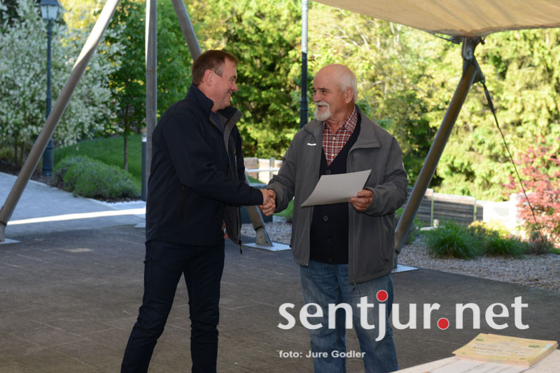 Šentjur, 26. 5. 2021 – Vinogradniško društvo Šentjur v letošnjem letu praznuje 40-letnico delovanja. Kot vsako leto so na vrtu Ipavčeve hiše podelili tudi priznanja, ki so jih prejeli vinogradniki na ocenjevanju vin, pa tudi salamarji za domače salame. Zbrane pa je uvodoma pozdravil mag. Marko Diaci ter se zahvalil predsedniku Vinogradniškega društva Šentjur za angažma pri ocenjevanju vin in izboru županovega vina. “V Šentjurju imamo zelo kvalitetne proizvode, katerim ocene rastejo iz leta v leto,” je še dodal. Kot zanimivost je povedal, da je v Vinogradniški učni kleti razstavljeno priznanje Martinu Zdolšku iz leta 1983 z oceno 14,90, ki je bilo takrat ena najvišjih ocen. Danes pa je povprečna ocena vin okoli 18,00.