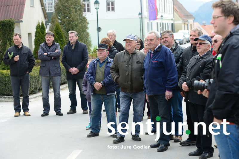 Šentjur, 13. 3. 2015 – V Zgornjem trgu rastejo tri trte, vse potomke več kot 450 let stare, najstarejše trte modre kavčine. V nagovoru je župan občine Šentjur, mag. Marko Diaci, nekaj deset prisotnih spomnil, da je pred dvema letoma trta rekordno obdodila – nabranih je bilo preko 300 grozdov. “Rez vinske trte je prvo in najpomembnejše delo v vinogradu. Z njo uravnavamo rodnost in kvaliteto grozdja,” je obrazložila vinska kraljica Svete Helene Martina Žavski. Z rezitvijo trto vzpodbujamo ali zaviramo v rasti in vplivamo na njeno življenjsko dobo. Mestni viničar Jurij Malovrh in župan Diaci pa vsako leto postrežeta s simpatičnimi zbadljivkami na račun drugega, kar pa daje rezitvi hudomušno konotacijo.