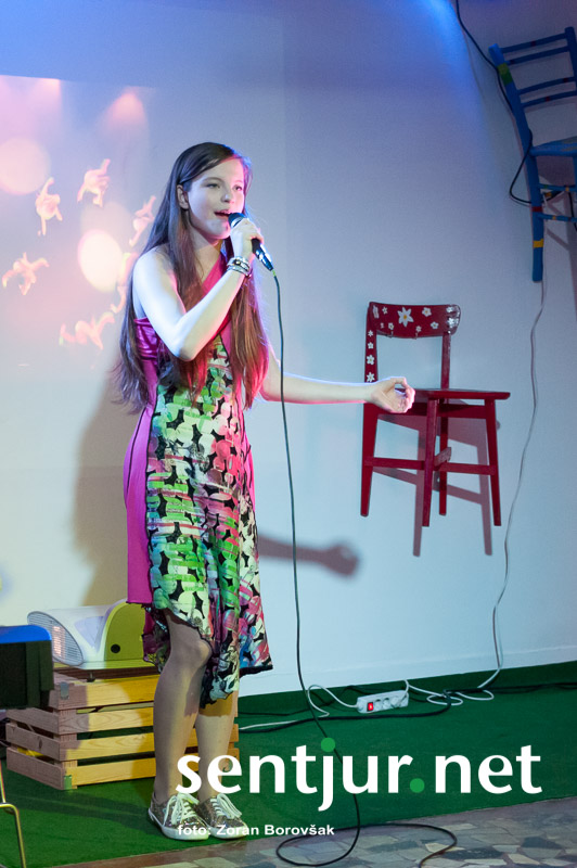 Da na odru ne bi stala sama, je za glasbeno spremljavo pri nekaj pesmih poprosila Svena Senico, mladega virtuoza na klavirju in ukulelah. Poleg njega sta jo na violini spremljali še Eva Vrečko in Daniela Preskar. Eno pesem sta z njo zapeli Lea Končan in Tjaša Esih, pri eni pa se ji je pridružila Maja Kovačić, s katero imata Youtube kanal, kjer si lahko ogledate več njunih skupnih prepevanj. Na koncertu je prepevala priredbe poznanih pesmi iz svetovne glasbene scene, kot zadnjo v rednem delu koncerta pa je zapela še svojo avtorsko pesem Dokler, za katero je pred kratkim posnela tudi videospot. Za konec je sledilo še presenečenje za njenega dedija. Ker je pred kratkim praznoval sedemdeset let, ga je povabila na oder, kjer sta skupaj zapela pesmico, ko ji v njeni družini prepevajo že od malega. (Zoran Borovšak)