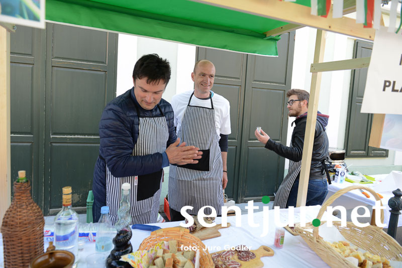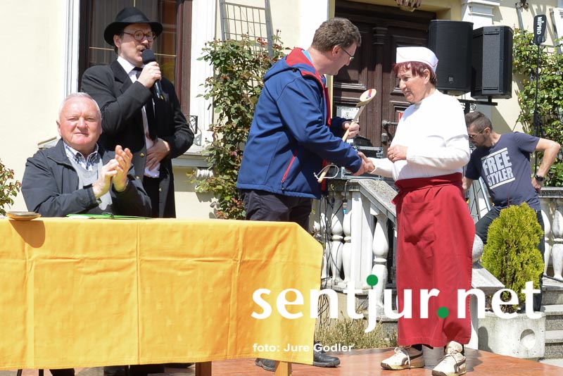 Šentjur, 22. 4. 2017 – Že tradicionalno se v soboto kuha “Šentjurjeva kisla župa”. Organizator vsako leto povabi različne skupine ljudi – medije, politične stranke, krajevne skupnosti, turistična društva … Tokrat pa so se odločili, da povabijo še pevske zbore iz občine Šentjur. Kuhanja so se udeležili trije zbori – predstavniki Moškega pevskega zbora skladateljev Ipavcev Šentjur, Jesensko cvetje in Moški pevski zbor Planina. Kmalu je iz železnih loncev že zadišalo in ko so se v Zgornji trg začeli vračati še pohodniki Jurjevega pohoda, je bila kisla župa že dokončana. Celoten potek kuhanja kisle župe pa je budno spremljala strokovna komisija v sestavi: častni občan Mihael Bučar, Zdenko Horvat in Magda Guček iz Šolskega centra Šentjur. Ti so budno spremljali tudi pripravo stojnice, čistočo delovne površine, spremljevalni program in ostalo. Na koncu pa je komisija še preizkusila okus kisle župe. Po seštevku točk je na koncu zmagala ekipa Ipavcev, drugo mesto pa sta si delili ostali dve ekipi. “Pripravljali smo se 14 dni, poskusili smo različne recepte in tudi skrbno smo pripravljali celostno podobo ekipe in stojnice,” nam je zaupal Rado Marot, predsednik Moškega pevskega zbora skladateljev Ipavcev Šentjur. Priznal je, da so poskrbeli za svinjske repke in parklje, sveže začimbe, kuhali so “piano” pojedli pa so “forte”, je dodal predsednik zbora. V ekipi so pomagale tudi soproge članov zbora, kasneje pa sta se jim pridružila še mlad kuhar in kuharica. (Jure Godler)