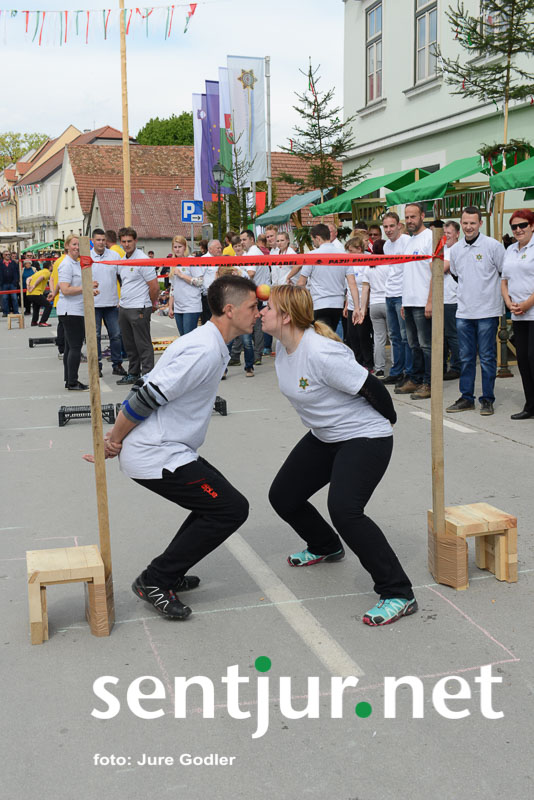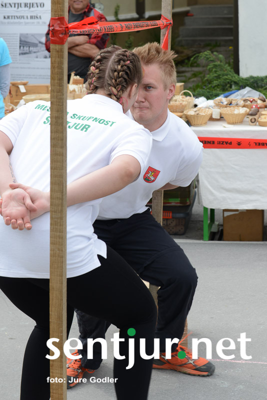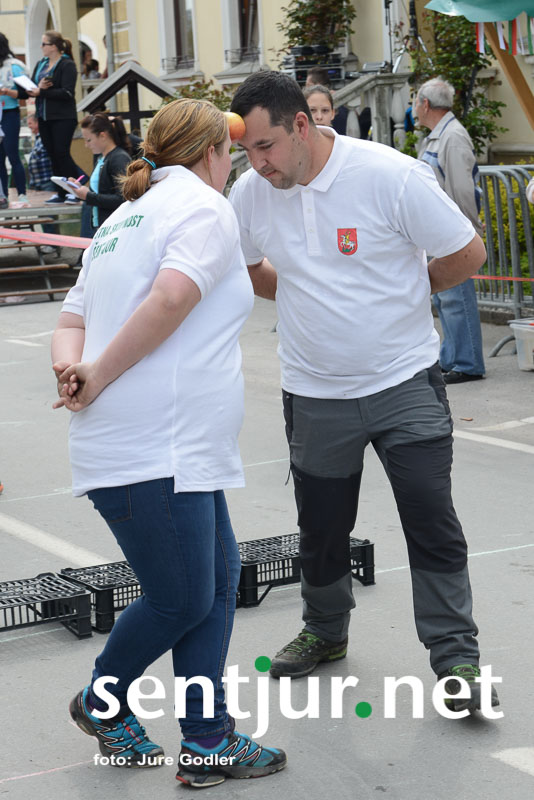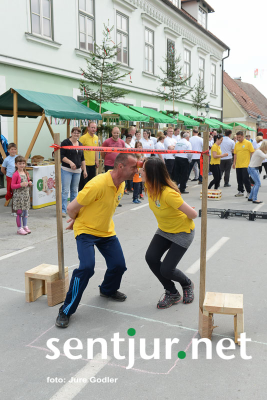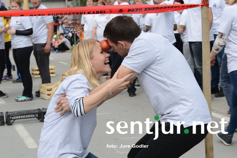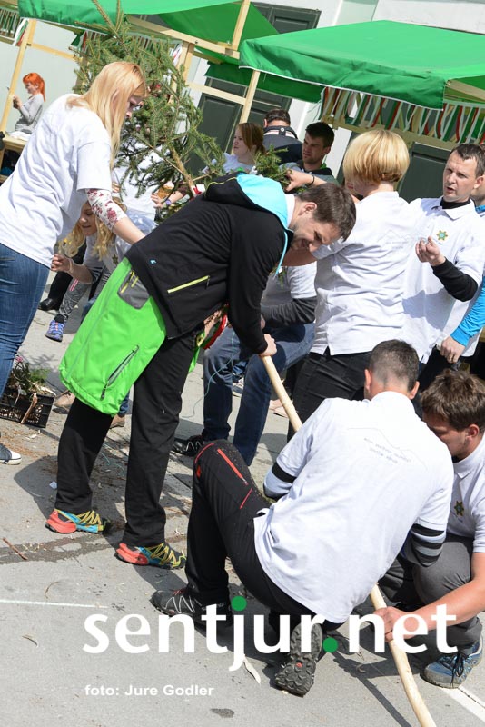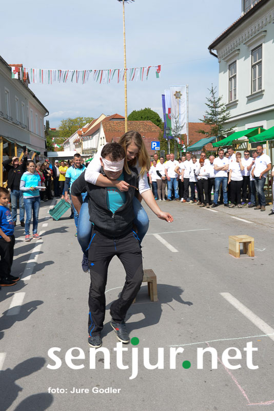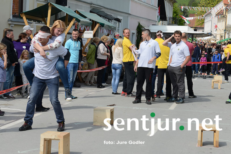 Šentjur, 22. 4. 2017 – V sklopu številnih prireditev v času Šentjurjevega so tudi Šentjurjeve igre. Organizacijo teh je prevzelo Društvo podeželske mladine Šentjur, ekipam pa je navodila dajala Albina Kolar. Organizatorjem je uspelo letos privabiti le štiri ekipe krajevnih skupnosti od trinajstih, kolikor jih je v naši občini. V igrah so sodelovali predstavniki in predstavnice KS Rifnik, KS Gorica pri Slivnici, KS Grobelno in Mestne skupnosti Šentjur. Člani DPM Šentjur pa so jim pripravili zanimive igre, ki so se, kot je že v navadi, začele s postavljanjem mini mlaja. Ekipe so namreč morale v času 10 minut smreko oskubiti in primerno okrasiti. V drugi igri so nabirali vejice trsov, moški trgači pa so morali zavezanih oči prenašati trgačice čez polje ovir. Brezročno so tudi prenašali in zbirali jabolke in izvedli druge igre. Na koncu je slavila ekipa KS Gorice pri Slivnici. (Jure Godler)