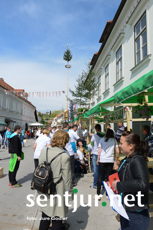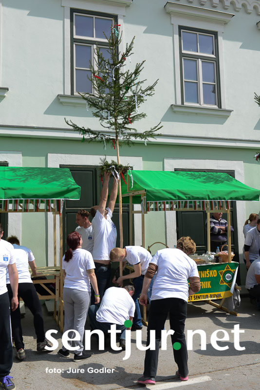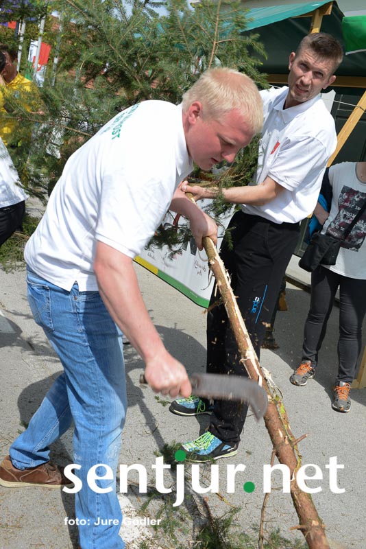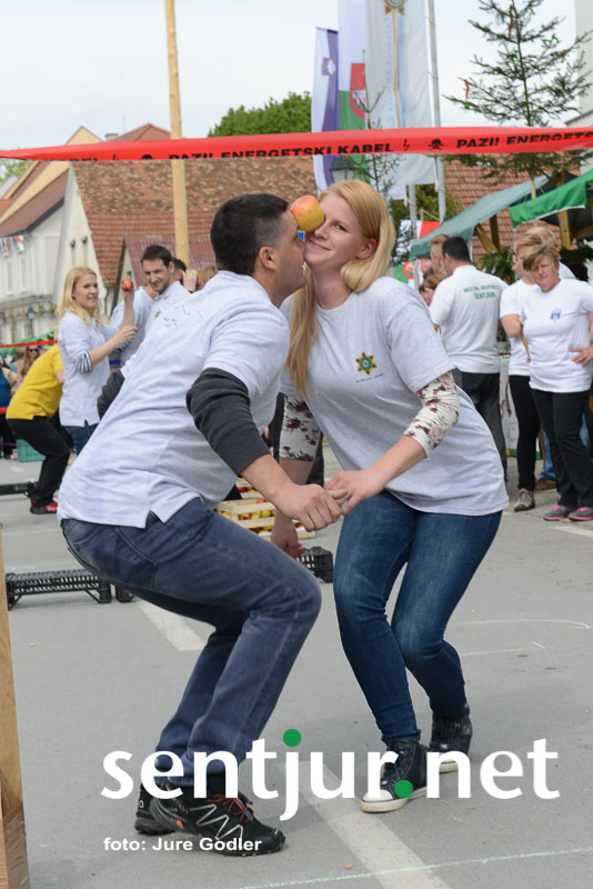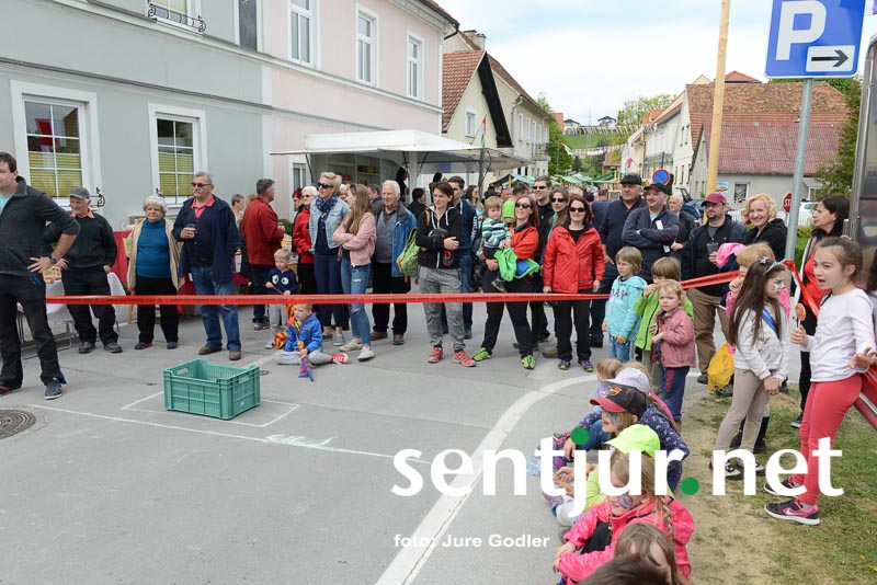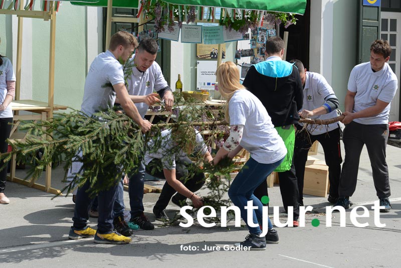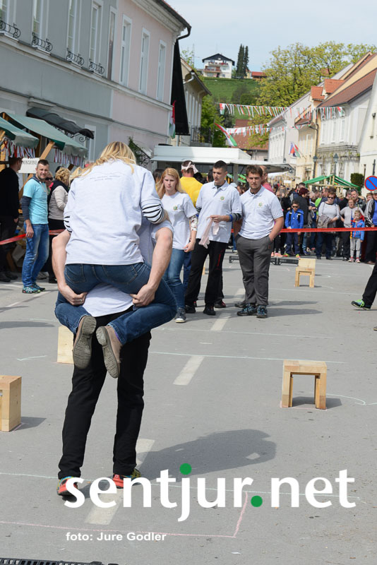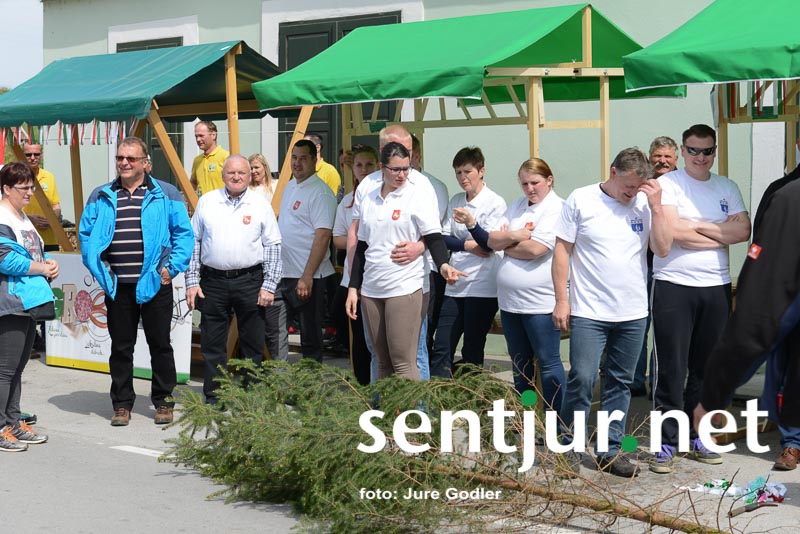 Šentjur, 22. 4. 2017 – V sklopu številnih prireditev v času Šentjurjevega so tudi Šentjurjeve igre. Organizacijo teh je prevzelo Društvo podeželske mladine Šentjur, ekipam pa je navodila dajala Albina Kolar. Organizatorjem je uspelo letos privabiti le štiri ekipe krajevnih skupnosti od trinajstih, kolikor jih je v naši občini. V igrah so sodelovali predstavniki in predstavnice KS Rifnik, KS Gorica pri Slivnici, KS Grobelno in Mestne skupnosti Šentjur. Člani DPM Šentjur pa so jim pripravili zanimive igre, ki so se, kot je že v navadi, začele s postavljanjem mini mlaja. Ekipe so namreč morale v času 10 minut smreko oskubiti in primerno okrasiti. V drugi igri so nabirali vejice trsov, moški trgači pa so morali zavezanih oči prenašati trgačice čez polje ovir. Brezročno so tudi prenašali in zbirali jabolke in izvedli druge igre. Na koncu je slavila ekipa KS Gorice pri Slivnici. (Jure Godler)