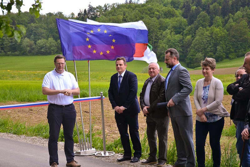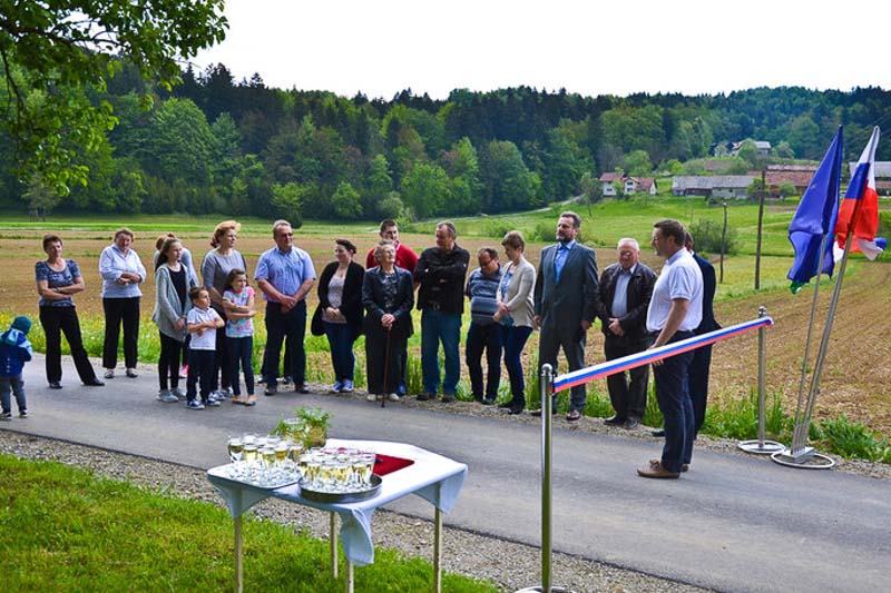 Šentjur, 7. maj 2016 – V soboto so v Spodnjem Kamenem še uradno v uporabo predali prenovljen cestni odsek. Kot je povedal župan mag. Marko Diaci, ki se je otvoritve udeležil s podžupanom Robertom Polnarjem, je tudi pri tej cesti do izraza prišlo dobro sodelovanje krajevne skupnosti, krajanov in občine, ki sodelovali v prenovi in jo tudi sofinancirali.
