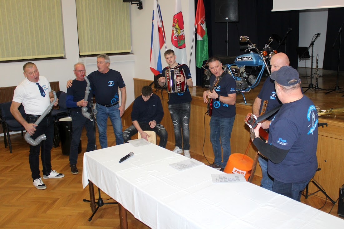 Občni zbor pa so zaključili z “zabavno platjo društva”, kot jo je poimenoval predsednik Novak. Skupina priložnostnih glasbenikov je zbrane, med katerimi so bili tudi predstavniki sorodnih društev iz drugih krajev, presenetila z glasbeno točko, tudi z improviziranimi glasbili.