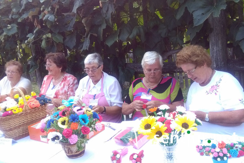 - Kako so mlatili pšenico, so prikazali kar na tri različne načine – s cepci, kar so prikazali upokojenci DU Rogatec: Štefka Jerič, Jože Kitak, Srečko Kitak in gospodinja Greta Krivec, pomagal jim je tudi povezovalec prireditve Matjaž Kitak. Na ročno mlatilnico so mlatili člani DU Grobelno: Janez in Danica Žogan, Mirko in Irena Gajšek, Tone in Dragica Lubej in DU Planina pri Sevnici: Anton Bobek, Zvonko Oprešnik, Franci Špan, Milena Špan in Marjana Nuč. Mlatili so tudi na gepelj s pomočjo kravje vprege. Kosci iz DU Podčetrtek Jernej Kokot, DU Grobelno Tone Lubej, DU Gorica pri Slivnici Drago Doberšek, Drago Leskovšek in grabljice iz DU Gorica pri Slivnici Sonja Doberšek, Marta Leskovšek, Beba Drame so na travniku za hlevom prikazali košnjo z ročno koso. Predsedniki DU so se pomerili v žaganju hloda, Marjan Drame, podpredsednik DU Gorica pri Slivnici, Bogomir Poharc, DU Rogaška Slatina, Jože Pavlovič, DU Rogatec, in Janez Žogan, DU Grobelno. Članice DU Podčetrtek Milka Žonta, Zalika Roršek, Dragica Leber in DU Šmarje pri Jelšah Ana Vogrinc so prikazale izdelovanje rož iz krep papirja. Tone Vogrinc iz DU šmarje pri Jelšah je prikazal izdelovanje grabelj. Člani Zveze društev upokojencev Kozjansko že deveto leto sodelujejo, in sicer iz 6 društev: Gorica pri Slivnici, Grobelno, Planina pri Sevnici, Podčetrtek, Rogatec, Rogaška Slatina, Šmarje pri Jelšah.