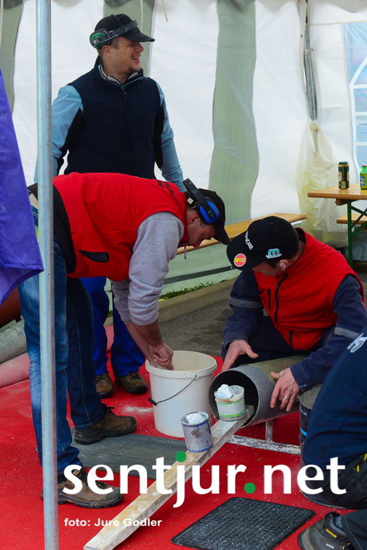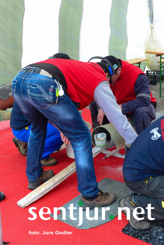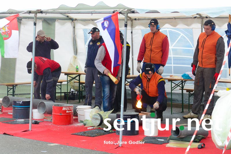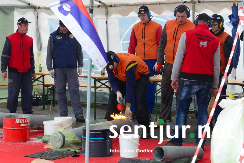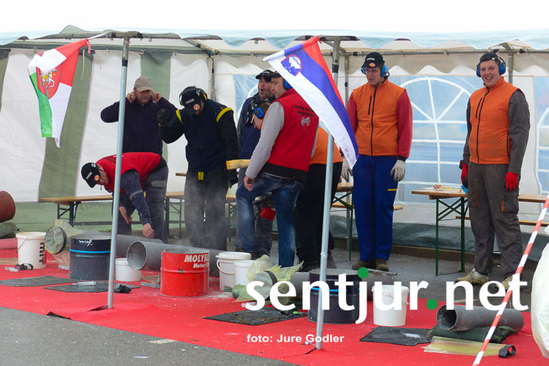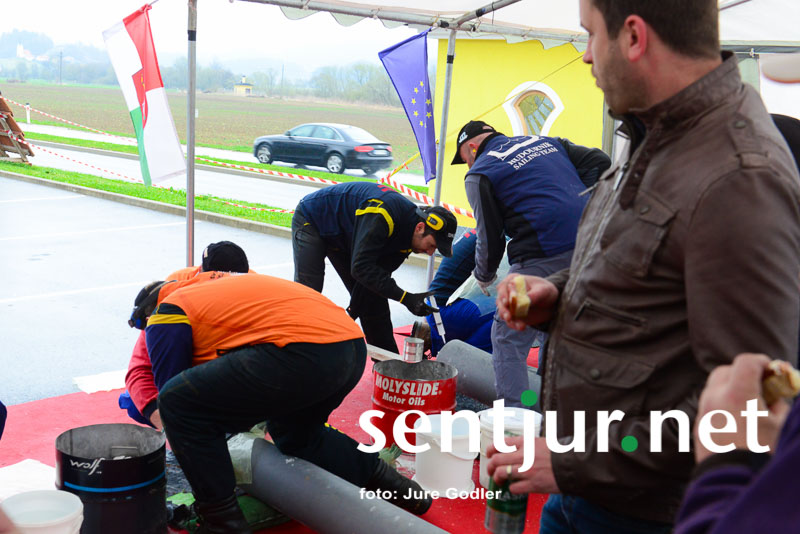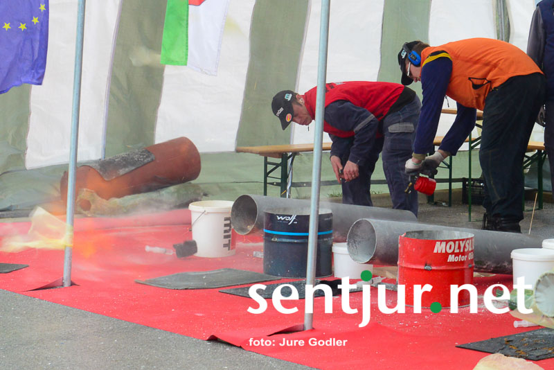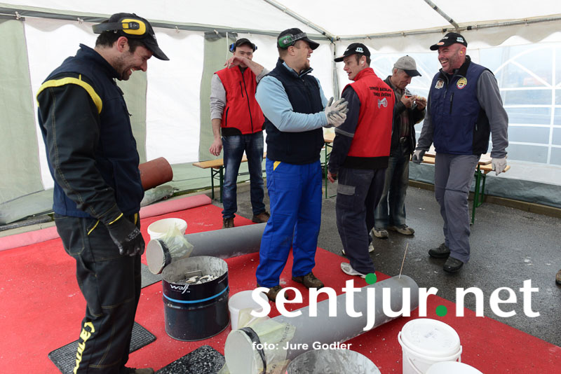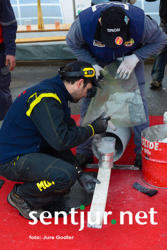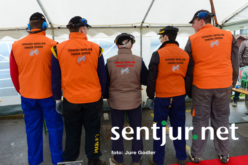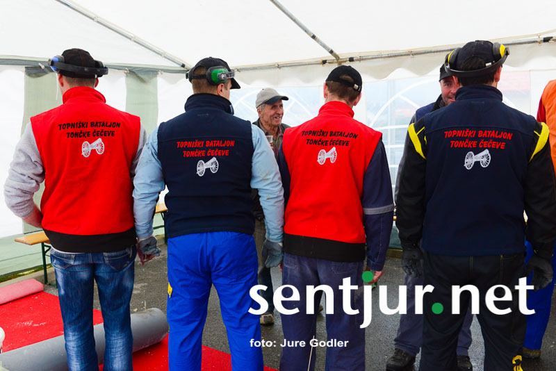 Šentjur, 4. 4. 2015 – Velika noč je najpomembnejši krščanski praznik, saj kristjani na ta dan praznujejo Jezusovo vstajenje od mrtvih. Na veliki petek so ga namreč križali, tretji dan po tem pa je po verovanju vstal od mrtvih. Ta praznik je praznik veselja. Velika noč na Slovenskem pa je pobrala kar nekaj poganskih običajev, ki so se ohranili še do danes. Na velikonočno simboliko se pojavlja velikonočni zajček, molk zvonov itd. Najglasnejši od teh šeg je “strašenje Boga”, ponekod to imenujejo tudi “strašnice”. Ta šega naj bi ponazarjala potres, ki naj bi se zgodil v času smrti Kristusa na križu. Tako se je iz velikonočne sobote na velikonočno nedeljo ponekod ohranilo tudi velikonočno streljanje. To šego že 25 let negujeta dva prijatelja in soseda iz Ulice Tončke Čečeve iz Šentjurja – Dejan Mulej in Goran Čolović. Takrat sta iz mladostne navihanosti postavila manjši top pri kozolcu nad ulico in streljala s karbidom. To navado pa sta ohranila vse do danes, le da sta iz nje naredila pravi festival pokanja s topovi. Ker je deseterico fantov iz ulice lansko leto napral dež, so tokrat postavili za bolj suho pokanje pravi šotor. Štirje topovi, deset topničarjev, imenovanih “Topniški bataljon Tončke Čečeve“, je začelo streljati že okoli 15. ure. Vsi oblečeni v brezrokavnike, katerih različna barva pomeni tudi čin topničarja. Vodja topničarjev, imenovani duhovni vodja, je bil Martin Zabukovšek, medtem sta prva častnika, Mulej in Čolović, bila ravno pobunika te akcije, ostali – Gregor, Luka, Nejc, Žiga, Nenad, Milan, Urban in Dejan – pa so rangirani vse od nižjih častnikov pa do pripravnikov. Na šotoru niso pozabili niti vseh treh uradnih zastav (evropske, slovenske in šentjurske ter nenazadnje “žegna”, da bodo lažje zdržali vse tja do naslednjega jutra. Seveda pa je tresenje šip sosednjih hiš privabilo še številne druge sosede in prijatelje – in prav je tako. (Jure Godler)