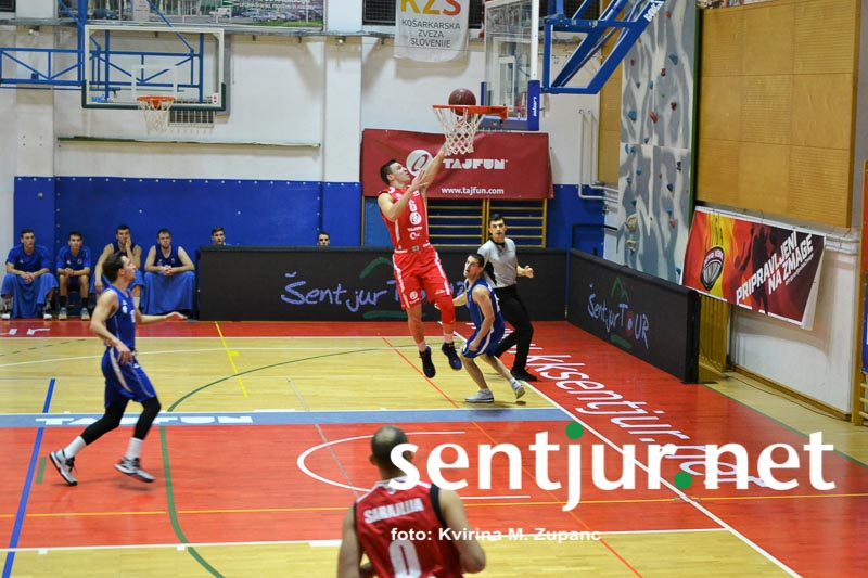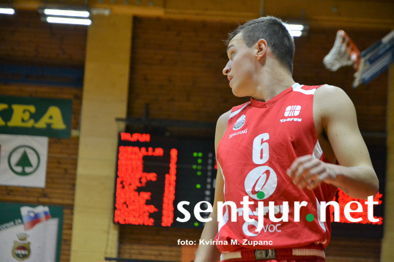 Khaliq Spicer je dosegel 23 točk in nekajkrat atraktivno zabil v koš, 18 točk je k zmagi prispeval Žiga Fifolt, 15 Mirza Sarajlija in 13 Danijel Vujasinović. Zmaga proti KK Portorožu je že tretja zaporedna zmaga, naši pa so le pokazali, da so ekipa, ki ne sodi na dno lestvice. Po končanem 10. kolu Lige Nova KBM so gledalci izbirali med najbolj atraktivnimi potezami 10. kola. Med naj 10 potez je bilo nominiranih kar tri šentjurske – alley-oop Žige Fifolta po podaji Malcolma Granta, ukradena žoga in ponovni alley-oop Milana Sebiča, po podaji Danijela Vujasinovića in še eno zračno zabijanje tudi Fifolta po Vujasinovićevi podaji. (Jure Godler, foto: Kvirina M. Zupanc)