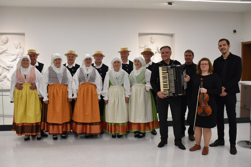 Šentjur, 19. 6. 2021 – V okviru kulturnih dogodkov Šentjurskega poletja so se pred Muzejem Južne železnice v Šentjurju predstavili Klub starodobnikov Večno mladi, Folklorno društvo Šentjur in Prostovoljno gasilsko društvo Šentjur. Folklorno društvo Šentjur je pripravilo razstavo fotografij od nastanka folklorne skupine v Šentjurju in delovanje skupine skozi čas, vse do današnjih dni. Začetki segajo v leto 1963, ko je bilo ustanovljeno Folklorno društvo skladateljev Ipavcev, njihova prva strokovna vodja pa je takrat bila Nuša Vrečko.