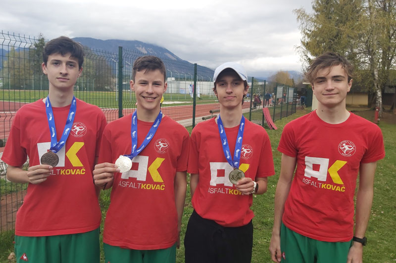 Radovljica, Hrastnik, 23. 4. 2029 – Na Prvenstvu Slovenije v dolgih tekih, ki je bilo v Radovljici so nastopili tudi atleti Atletskega kluba Asfalt Kovač Šentjur. Srebrni medalji sta osvojila Martin Artnak z osebnim rekordom na 5 km v kategoriji U16 in v svojem prvem teku na 10 km Filip Cmok, v kategoriji U18. Bronasto medaljo si je okoli vratu obesil Jakob Cmok v istem teku. Uspešno sta nastopila tudi Val Filej (5.) na 5 km U16 in Blaž Brečko (9.) na 10 km člani. V članski kategoriji pa je visoko 9. mesto osvojil tudi David Plevnik na tekaški prireditvi Hrastnik Trail 2022 v okviru katerega je potekalo tudi Prvenstvo Slovenije GOR-DOL (12,59 km, +- 778 m) za člane, članice ter tudi zmagal v svoji kategoriji. (foto: arhiv AKŠ, AZS Peter Kastelic)