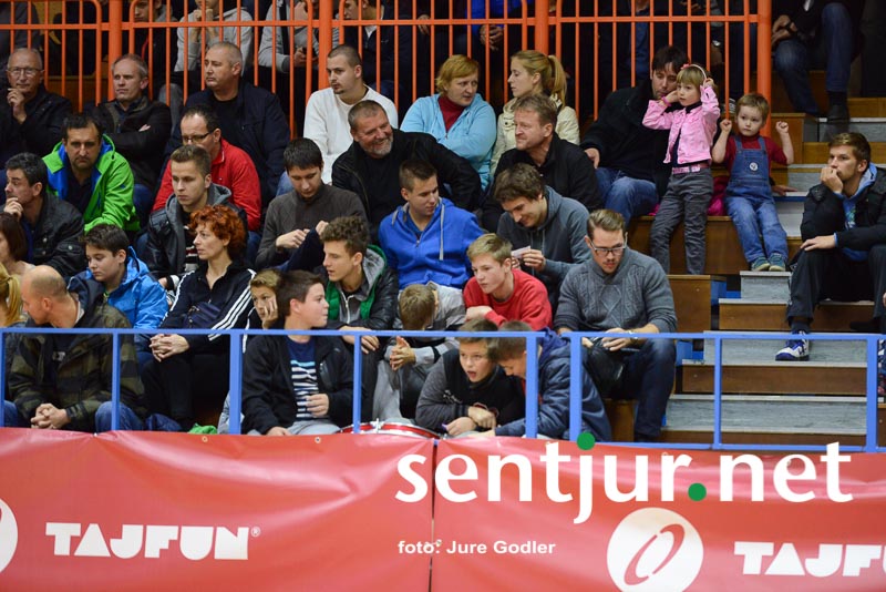 Šentjur, 29. 11. 2014 – Šentjurski košarkarji so v soboto gostili ekipo Maribor Nova KMB. Z Mariborčani naša izbrana vrsta še ni izgubila že tri leta, zato je marsikdo pričakoval lahko zmago in ponovno superiornost domačih košarkarjev. Temu primerno je bil tudi nekaj manjši obisk sicer zveste domače publike. Vendar se tekma ni odvijala po pričakovanjih. Ekipi sta bili rezultatsko povsem izenačeni in nobena si ni pripravila večje prednosti. V prvem polčasu sta se ekipi bolj kot ne izmenjevali v vodstvu ter na premor odšli z rezultatom 41:43 za goste. V začetku drugega polčasa so zagrozili gostje in si pripravili večjo prednost – 7 točk. Takrat je odgovornost za rezultat v svoje roke vzel Američan Ceola Clark III, ki je s tremi zaporednimi trojkami rezultat preobrnil v našo korist. Na koncu pa so naši zasluženo slavili z 81:76. Kar neverjetna serija zmag Tajfuna se nadaljuje, saj se z osmimi zaporednimi zmagami precej oddaljujejo od zasledovalnih ekip, saj drugi dve – Rogaška in Zlatorog Laško zaostajata že za 4 točke na Telemachovi lestvici, imata pa tekmo manj. Organizatorji so se za zadnjo tekmo tudi zelo izpostavili in pripravili prihod naših igralcev na igrišče v stilu velikih moštev – s svetlobnimi efekti in z glasbo. Med glavnim odmorom je zapela obetavna pevka Špela Jezovšek, kratko tekmo med seboj pa so zaigrali mladi košarkarji šole košarke KK Šentjur.