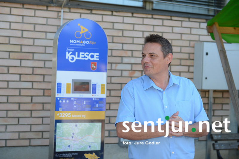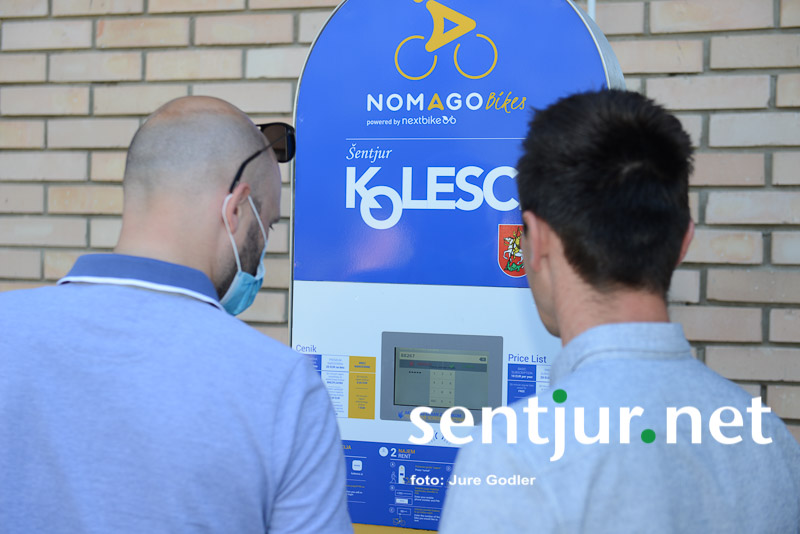 Šentjur, 10. 7. 2020 – V petek je župan mag. Marko Diaci skupaj s predstavniki podjetja Nomago d. o. o., ki skrbi za infrastrukturo, pripravil predstavitev že delujočega javnega sistema izposoje koles KOLESCE, ki je sedaj zaživel tudi v Občini Šentjur. Občina Šentjur je za izvedbo projekta uspešno pridobila nepovratna evropska sofinancerska sredstva v višini slabih 80.000 evrov. Z ureditvijo ustrezne infrastrukture se je tako vključila v obstoječi sistem izposoje koles, ki ga že uporabljajo Mestna Občina Celje, Občina Laško, Občina Štore, Občina Žalec, Občina Zreče, Občina Slovenske Konjice in Občina Polzela. Konkretno to pomeni, da je sistem izposoje za vse te občine kompatibilen in da lahko s kolesi prehajate v vse te občine ter ureditev izposojo oziroma vrnitev kolesa.