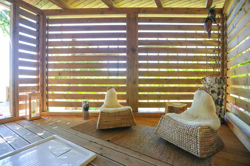 V letošnjem letu so ponudbi dodali še podeželski wellness, zunanjo finsko savno, ogrevano s pečjo na drva, in masažno kadjo pod zvezdnim nebom, vrh ponudbe pa predstavlja luksuzna bivalna hiška med krošnjami, ki je v celoti izdelana iz ekoloških, povsem naravnih, lokalnih materialov in je edina ogrevana, celoletna drevesna hiška v Sloveniji. Ponudba posestva je raznolika. Lahko jih obiščete samo, da si ogledate čudovit razgled po južnoštajersko-kozjanskem hribovju, popijete kavo, domač čaj ali točeno Staropramen pivo, katerega so pogumno, kot sami pravijo, še vedno edini na področju sosednje občine Laško, uvrstili v ponudbo.