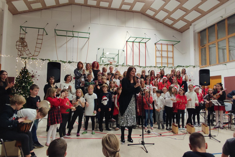 Na prireditvi nas je najprej nagovorila gospa ravnateljica Suzana Plemenitaš, nato pa so sledile točke, ki so jih pripravili otroci iz vrtca, otroški in mladinski pevski zbor ter pevski zbor zaposlenih. Sodelovali so tudi učitelji, ki smo jih gostili v okviru projekta KA122 Tehnologija, dobro počutje in narava z roko v roki, programa Erasmus+. Ob koncu so družno v petih jezikih (v slovenščini, angleščini, poljščini, španščini in hrvaščini) zapeli pesem Feliz Navidad. Naš večer se je zaključil v res prijetnem druženju in komaj čakamo na naslednje srečanje. (Pripravile učenke OŠ Dobje: Jasmina, Lucija in Anika)