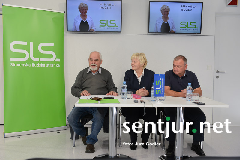 Šentjur, 10. 10. 2018 – Novembrske volitve za župana, občinski svet in svete krajevnih skupnosti postajajo vedno bolj zanimive. Poleg aktualnega župana mag. Marka Diacija se bodo za županski stolček potegovali vsaj Janez Jenšterle (SMC), Mojca Inkret (SDS) in po novem tudi Mihaela Rožej (SLS). Slednja je svoj namen kandidature najavila na novinarski konferenci v avli Ipavčevega kulturnega centra Šentjur. Družbo sta ji delala Jurij Malovrh in Milenko Tanšek. Rožejeva je po izobrazbi diplomantka vseživljenjskega izobraževanja, nazadnje pa je bila zaposlena v Vrtcu Šentjur kot organizacijska vodja enote vrtca. Od 1. septembra dalje pa je tudi upokojenka. V politiko se je vključila leta 2011 in se pridružila SLS ter postala tudi predsednica lokalnega odbora. Bila je podpredsednica glavnega odbora stranke, na zadnjem kongresu pa je bila izvoljena za članico izvršilnega odbora SLS.