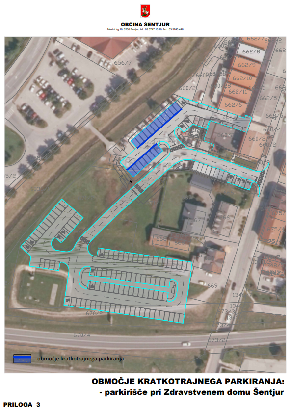 Druga novost pa je uvedba modrih con na treh parkiriščih v centru Šentjurja, in sicer: