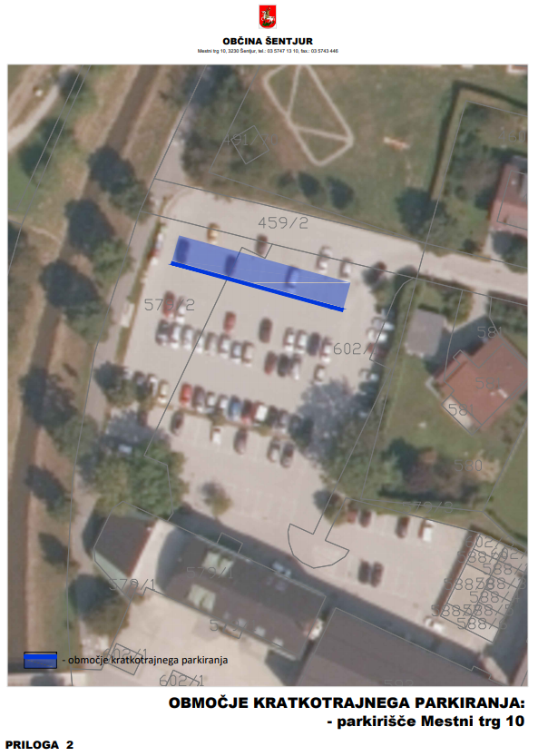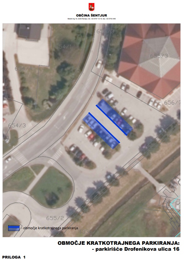 - na parkirišču za občinsko stavbo na naslovu Mestni trg 10, Šentjur (14 parkirnih mest),