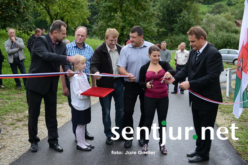 Slavnostni trak so v začetku “blagoslova iz neba” poleg župana in podžupana ter predsednika KS Hribernika prerezali še Cvetko Privšek, Zdravko Kukovič ter predsednica gradbenega odbora.