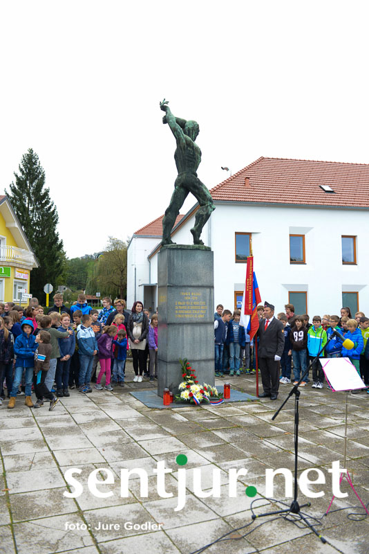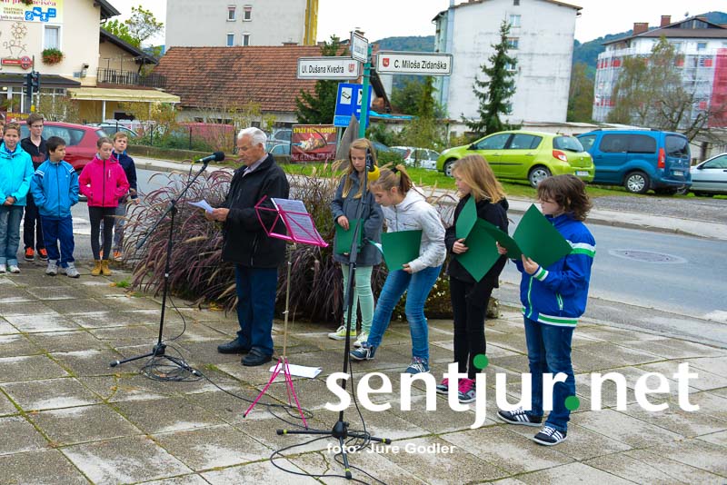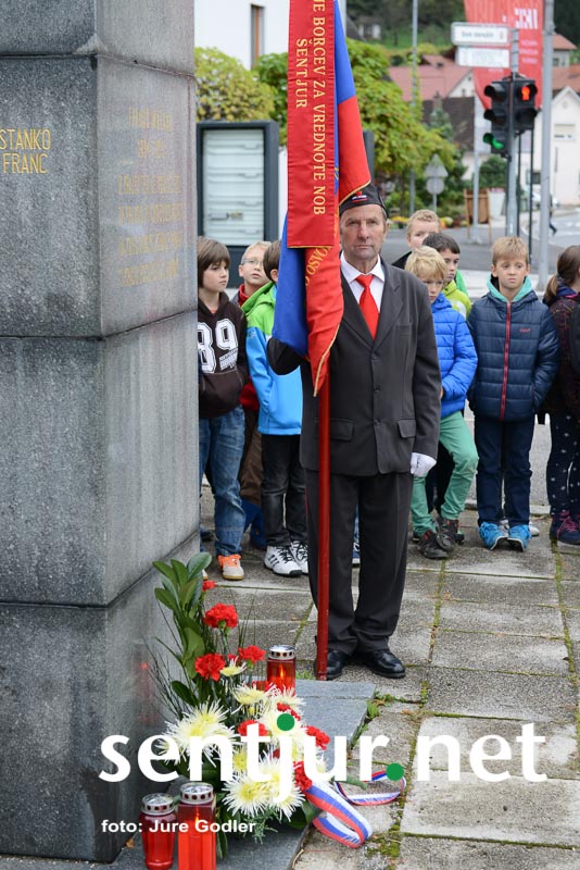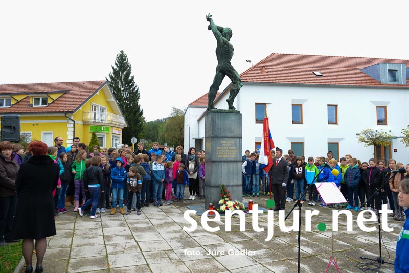 Šentjur, 24. 10. 2014 – Tako kot vsako leto je Združenje borcev za vrednote narodnoosvobodilnega boja Šentjur z učenci OŠ Franja Malgaja Šentjur pripravilo komemoracijo pred spomenikom padlih borcev v Šentjurju. Uvodoma je zbrane učence in učitelje pozdravil predsednik združenja borcev Bogomir Ulbing. Povedal je, da je prav, da se vsaj enkrat na leto poklonimo tistim, ki so se bojevali za svobodo in obstoj slovenskega naroda. “Čeprav sam pripadam mlajši generaciji, ki ni doživela strahot druge svetovne vojne, se mi zdi pomembno, da se s spominom na tiste dni spomnimo grozodejstev in si želimo, da se ne bi več ponovila,” je povedal predsednik borcev. Učenci OŠ Franja Malgaja Šentjur so pripravili tudi recital, na violino je zaigrala Eva Vrečko, in tako počastili spomin na padle borce. (Jure Godler)