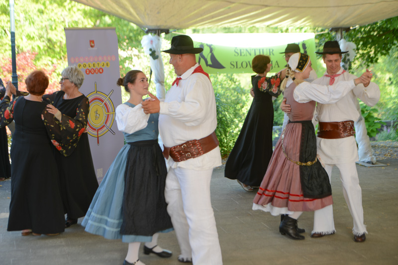 Šentjur, 30. 6. 2024 – Vrt Ipavčeve hiše je zadnjo junijsko nedeljo ponovno zaživel, kot je nekoč, ko so se na tem mestu pod takrat še ne tako mogočno lipo družili družina Ipavec in ostali. Na tem mestu so klepetali, sklepali dogovore ter velikokrat prepevali in zaplesali. Tokrat so čudovit ambient izkoristili člani in članice Folklornega društva Šentjur, ki so znova pripravili svojo tradicionalno prireditev Poletni folkorni večer. “Ples in petje sta že od nekdaj bila del družabnega življenja, s katerim so obeležili praznike in opravili zaključke,” sta uvodoma povedala Dragica in Alen Gobec, ki sta prevzela moderiranje prireditve. Dodala sta, da so ljudski plesi del ljudskega izročila naroda, na kar seveda moramo biti ponosni.