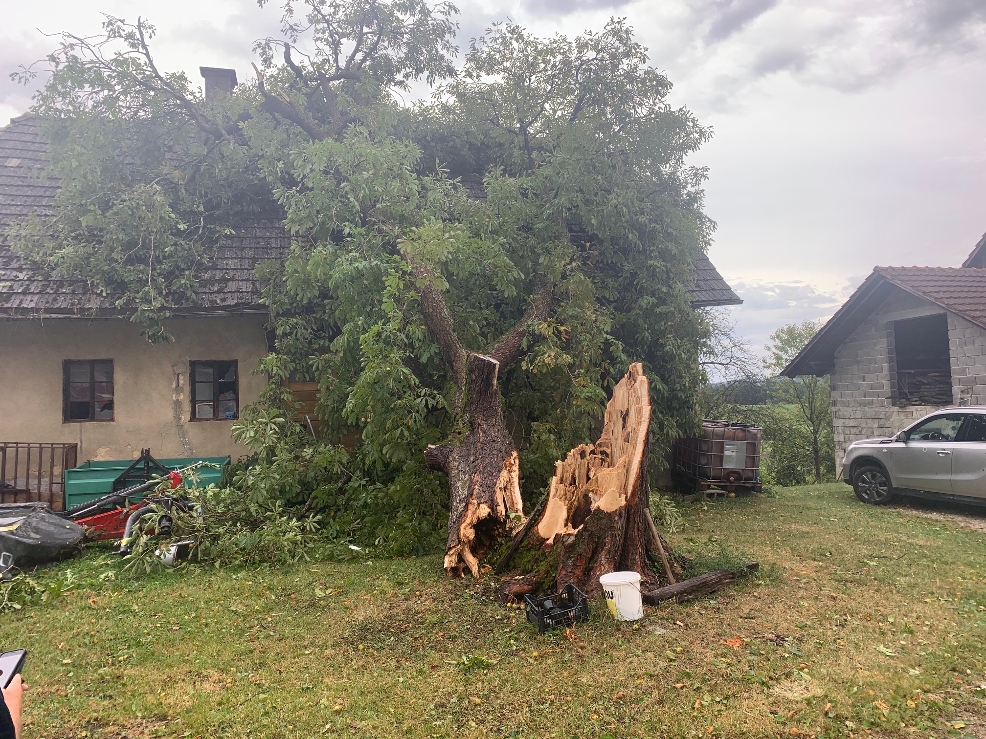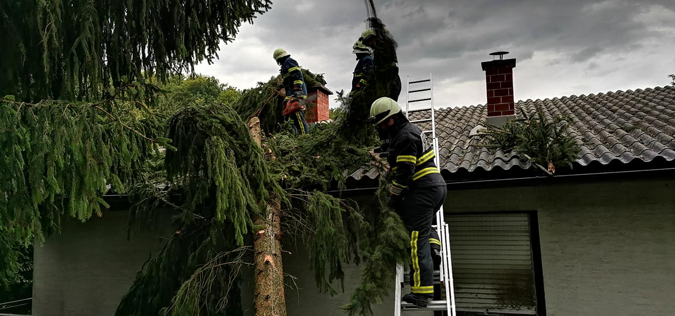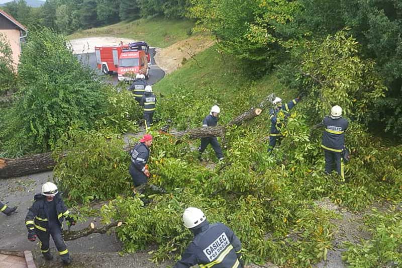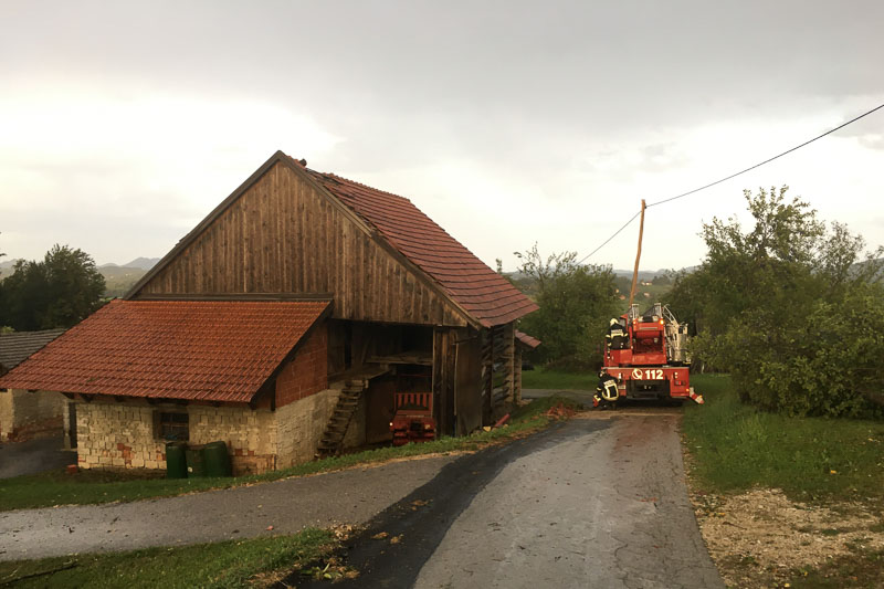 Šentjur, Dobje, Šmarje pri Jelšah, 30. 8. 2020 – Lokalno močno neurje je zajelo Slovenijo. Tudi Šentjur, Dobje in Šmarje pri Jelšah niso bili prikrajšani. Veliko objektov je poplavljenih, razkrivalo in podiralo je strehe ter lomilo drevesa. Poleg neurja pa je ponekod padala tudi toča. V Dobju poročajo o razkritih strehah in polomljenih drevesih, ki so ohromili promet, v Grobelnem naj bi se podrl električni drog. Odneslo je kar nekaj cestnih bankin. Gasilci podatke o škodi še zbirajo. Več informacij sledi. (Jure Godler, foto: gasilci)