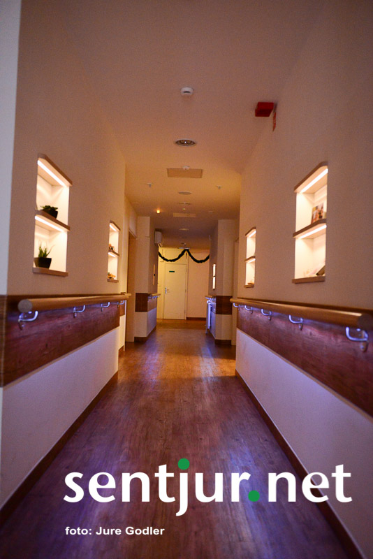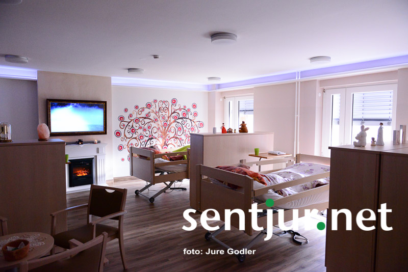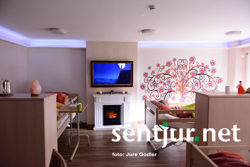 Šentjur, 11. 1. 2016 – Konec lanskega leta so v Domu starejših Šentjur zaključili investicijo Oaze in prenove sob, kjer bivajo stanovalci z demenco. Oaza je nov koncept dela in bivanja, ki še ni uveljavljen po Sloveniji, vendar je po tujini že uveljavljen. Razvit je bil za stanovalce v zadnjem stadiju demence, kjer verbalna komunikacija ostarelih ni več mogoča, vendar pa ti še vedno zaznavajo preko drugih čutil – stik, dotik, pristope, zvok … “Ravno zaradi tega, ker vizualni kontakt s stanovalci ni več mogoč, smo projektiranju Oaze namenili še posebno pozornost,” pove direktorica Doma starejših Šentjur, Vesna V. Razboršek. Direktorica pove, da so v to prenovo vključili tudi svojce, ki svoje bližnje najbolje poznajo in vedo povedati, kako okolje vpliva na njih. Prostor za Oazo so našli v prostorih delovne terapije, slednjo pa začasno preselili v druge prostore. Novi prostori, kjer so svoj prostor našli štirje stanovalci, so pritlični prostori obrnjeni na jug, da v prostore posije kar največ sonca ter da imajo tudi izhod s posteljo na svež zrak.